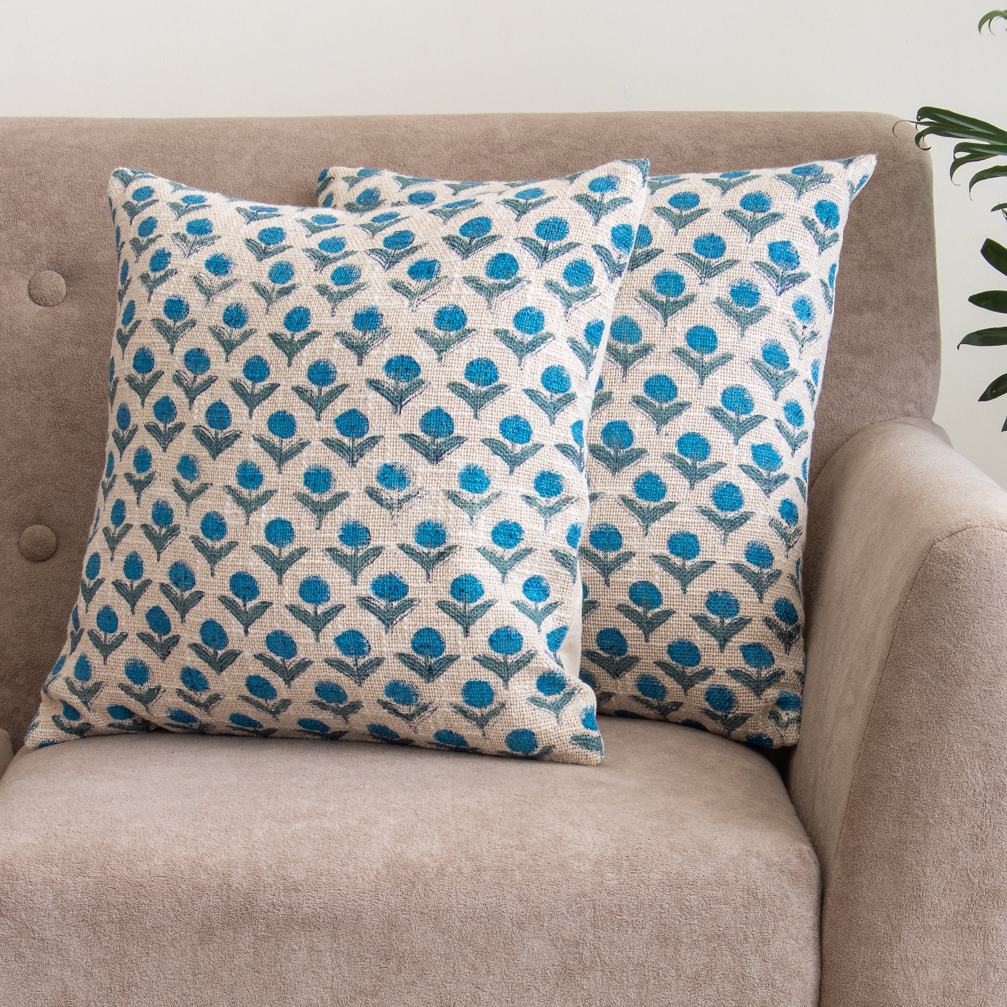 Blue Floral Printed Cotton Cushion Cover Set of 2, 3, 5 and 6