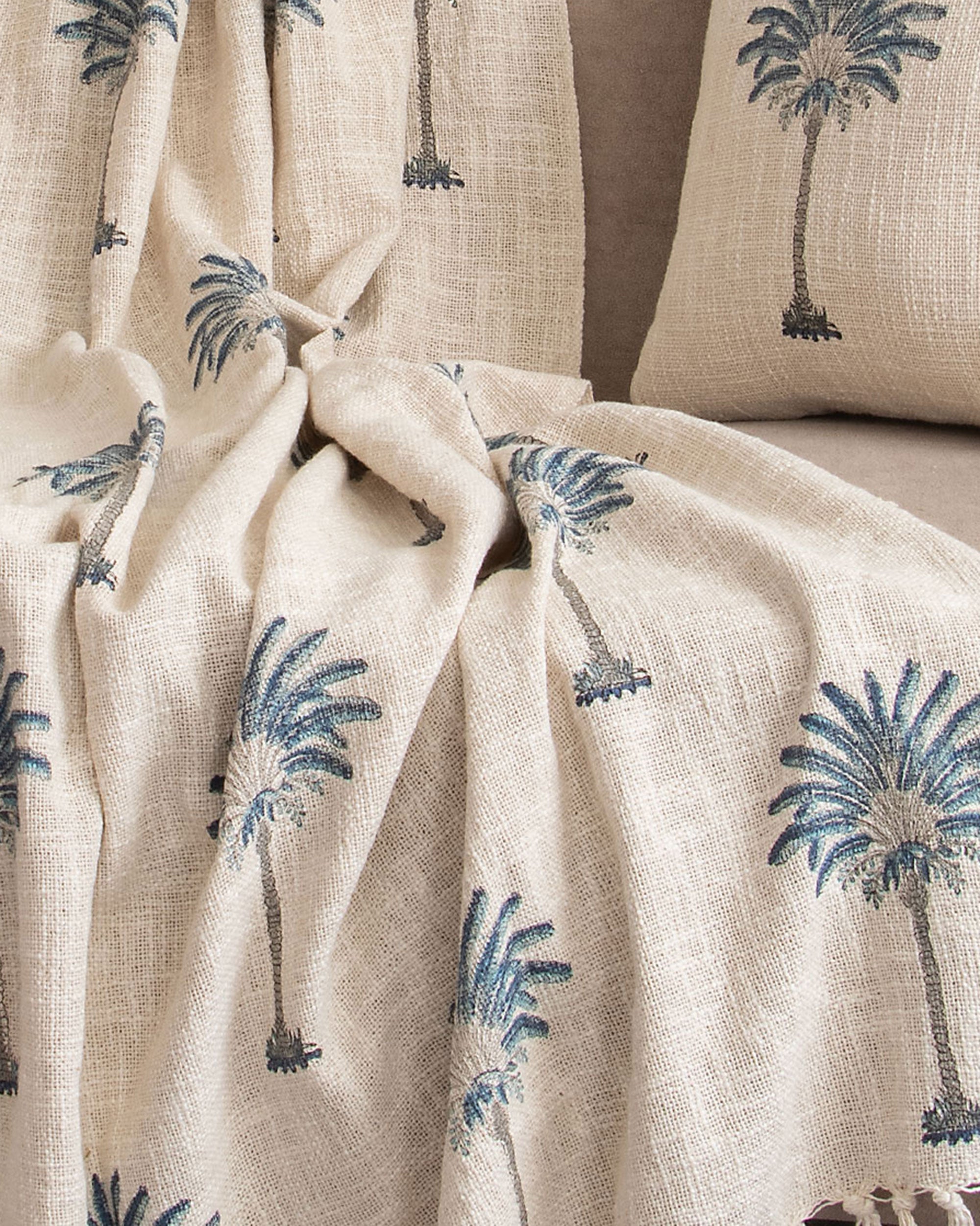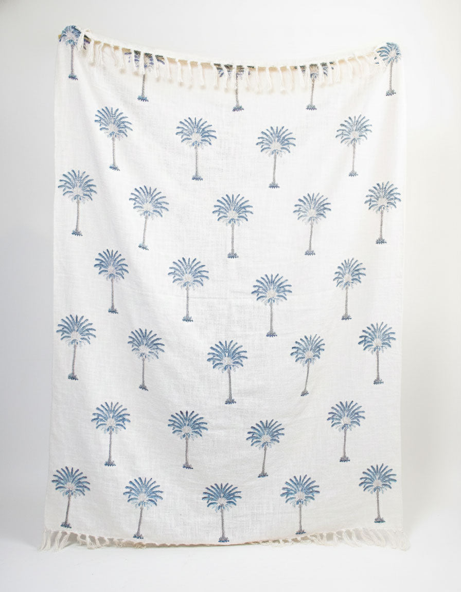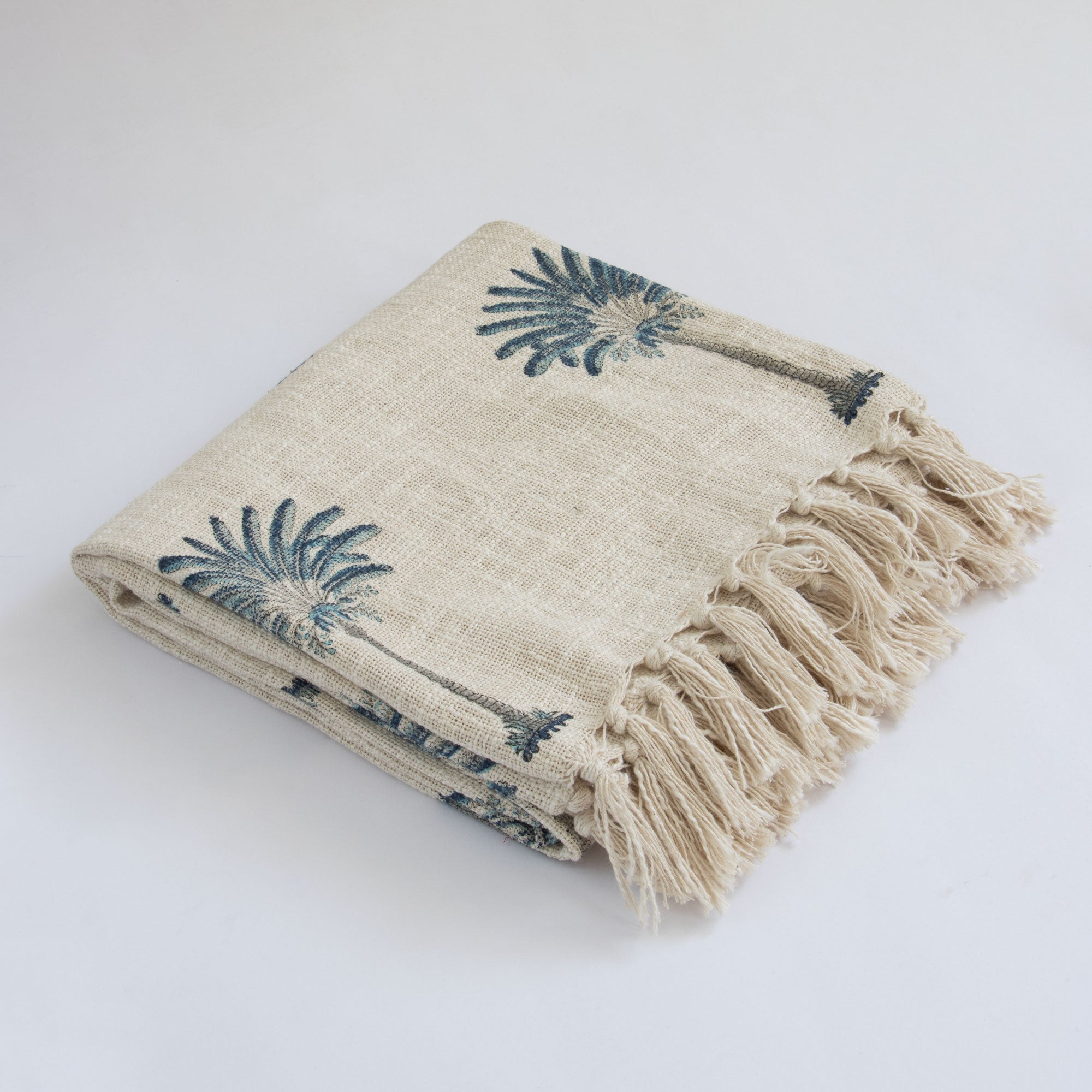 Blue Hand Block Palm Printed Sofa Throw Blanket