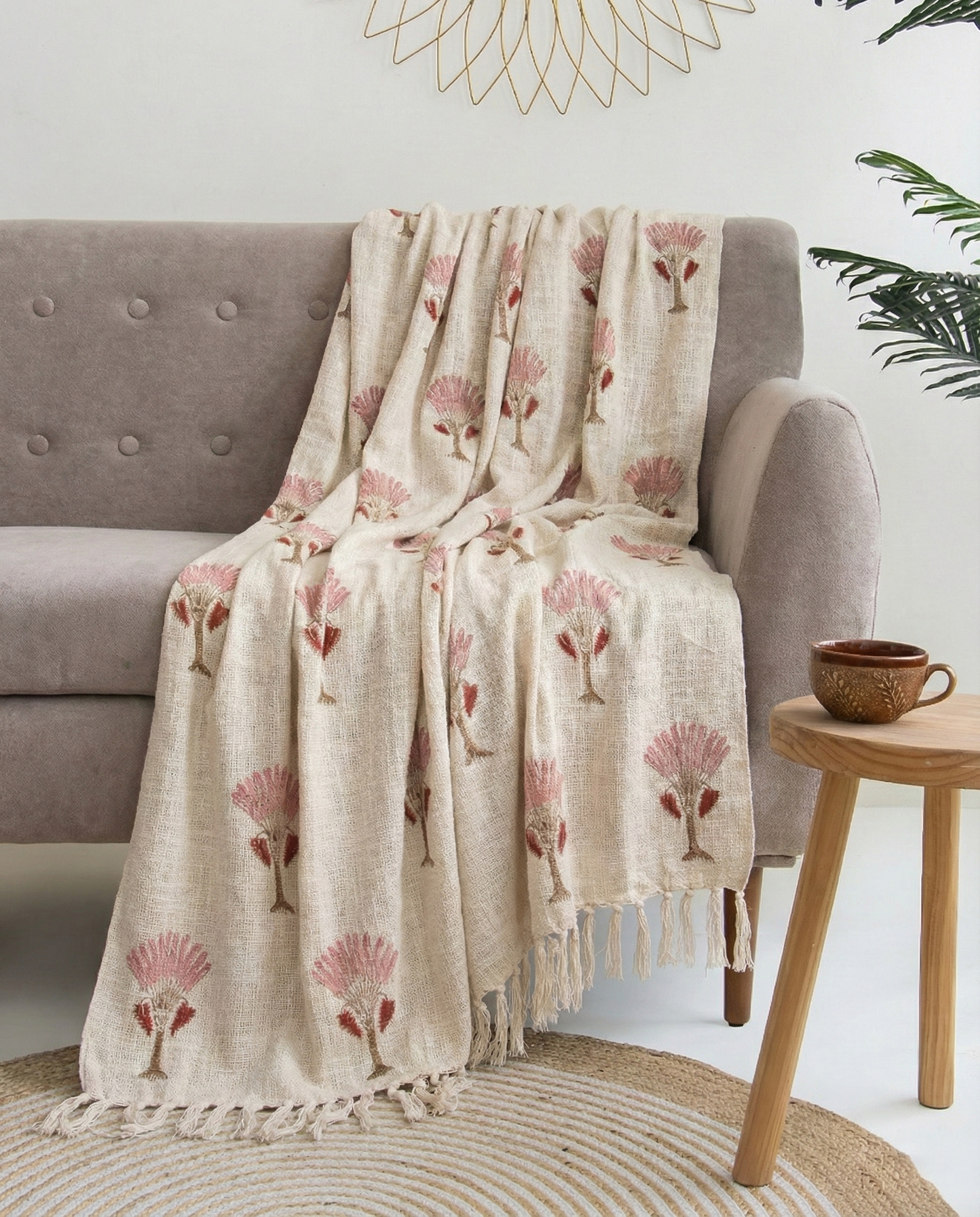 Introducing our Cotton Throw Blanket – a cosy essential for your home. The beauty of the hand block print throws is irresistible because of the plush and elegant pure cotton material and the nature-inspired designs carved out of hand block printing. The Indian handmade sofa throws spruce up the look of your sofa and interior. Embrace warmth and elegance with our cotton block print throw.