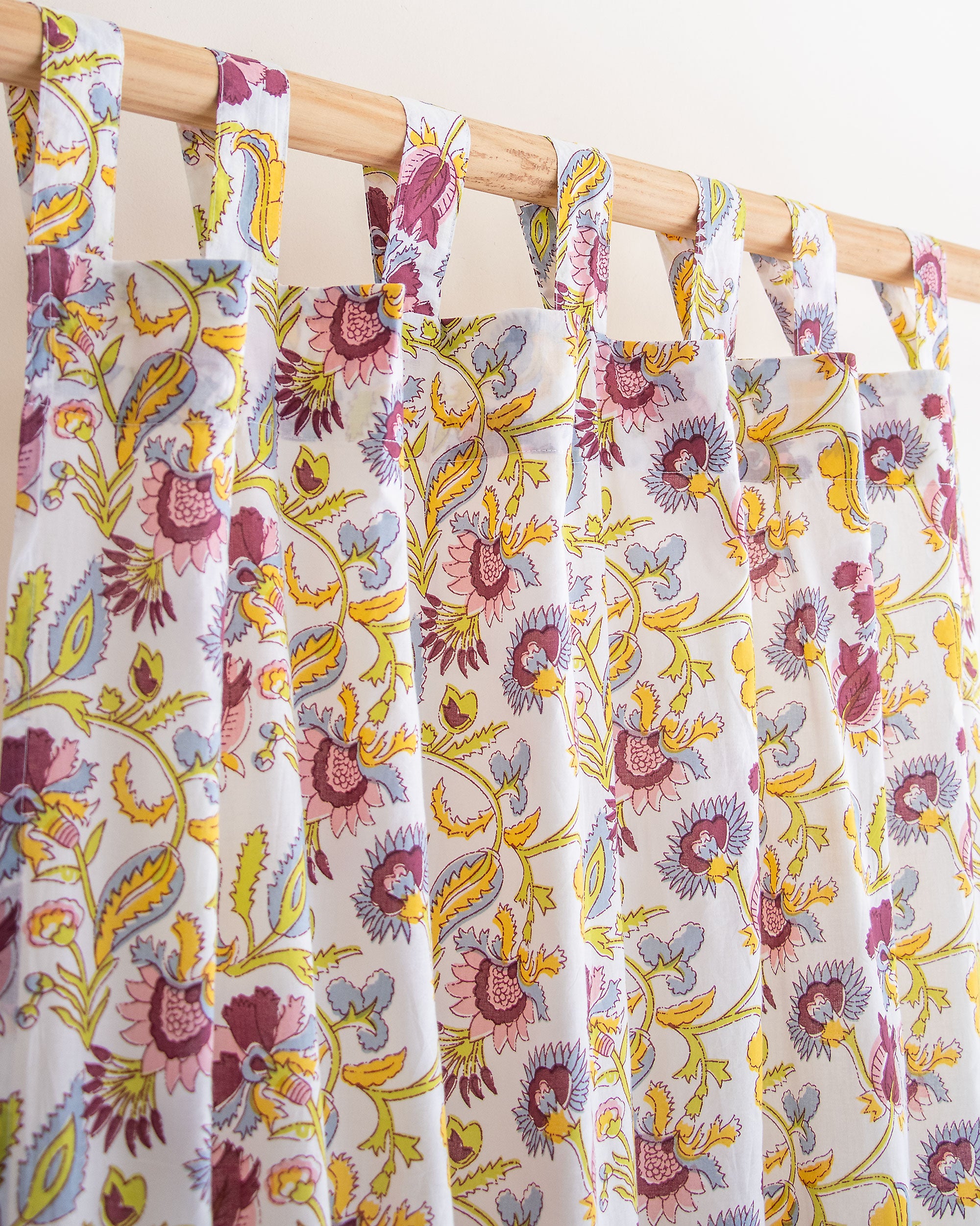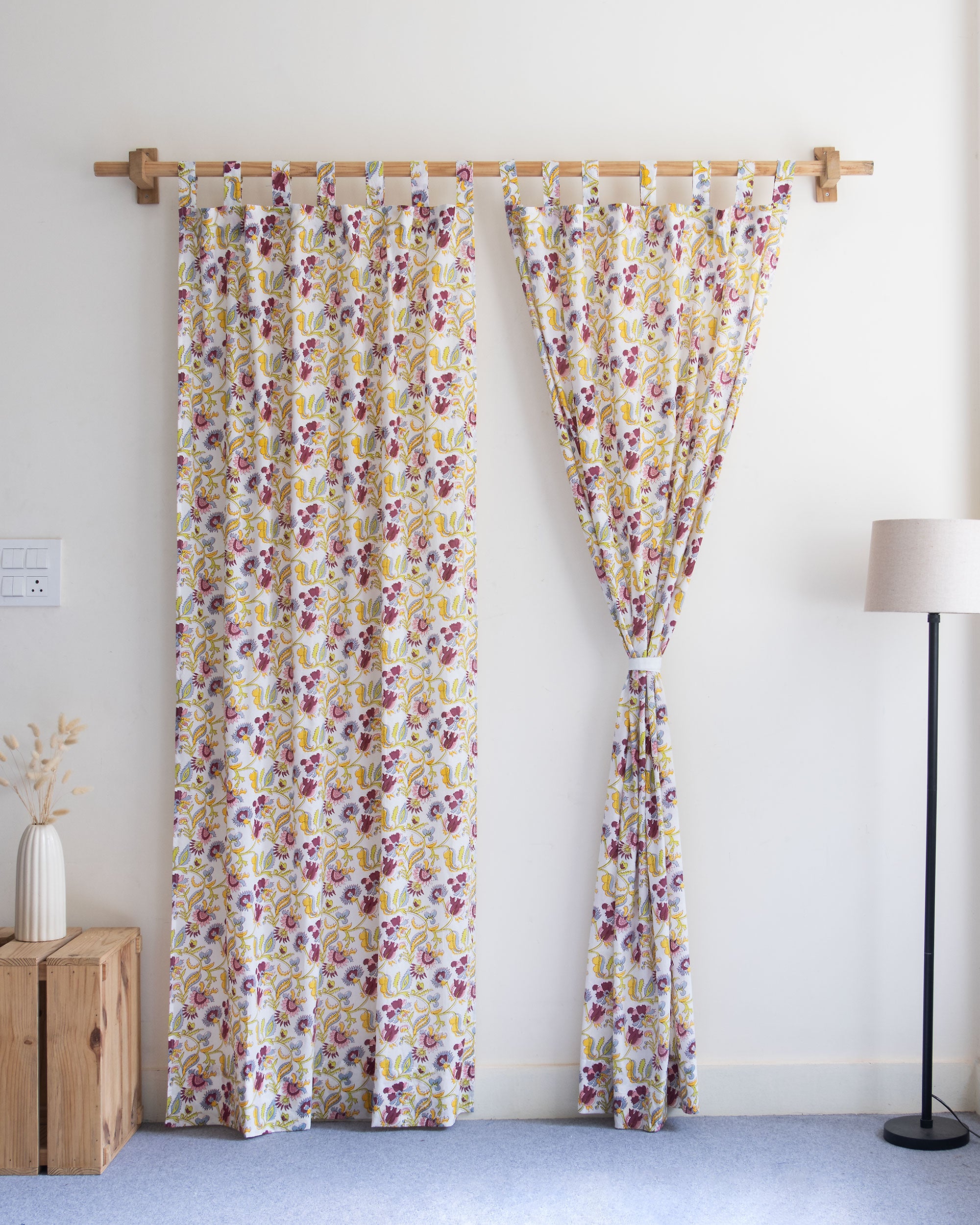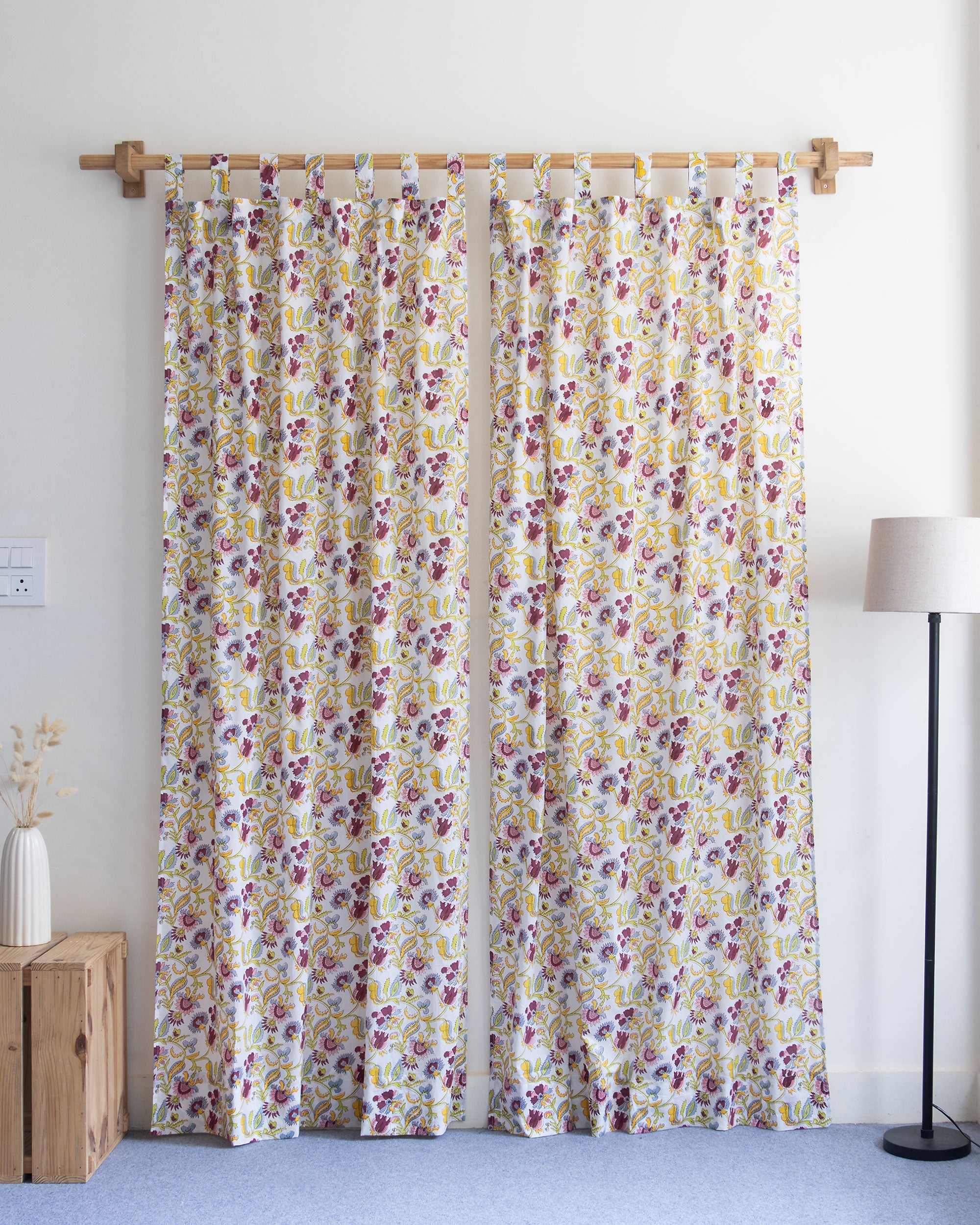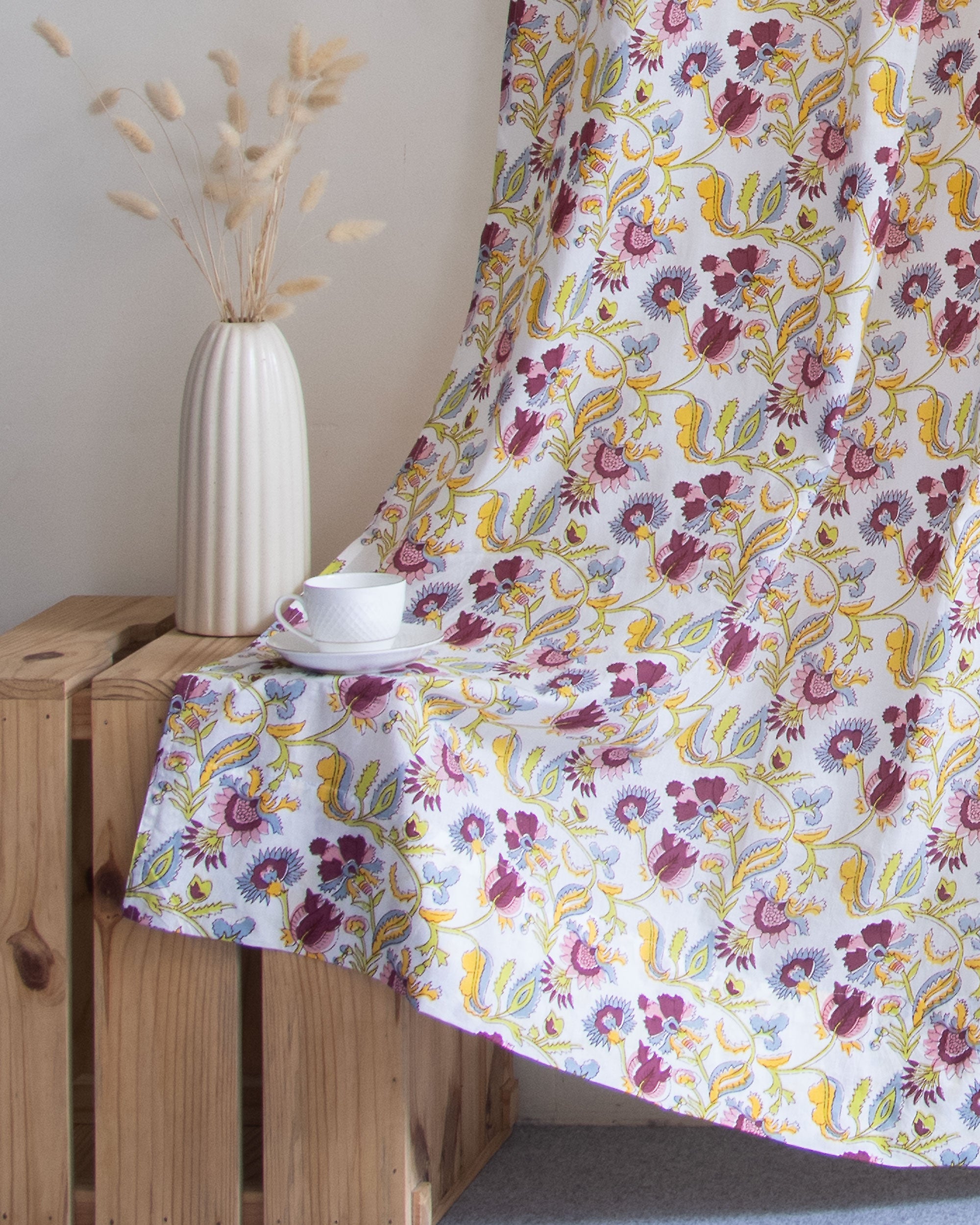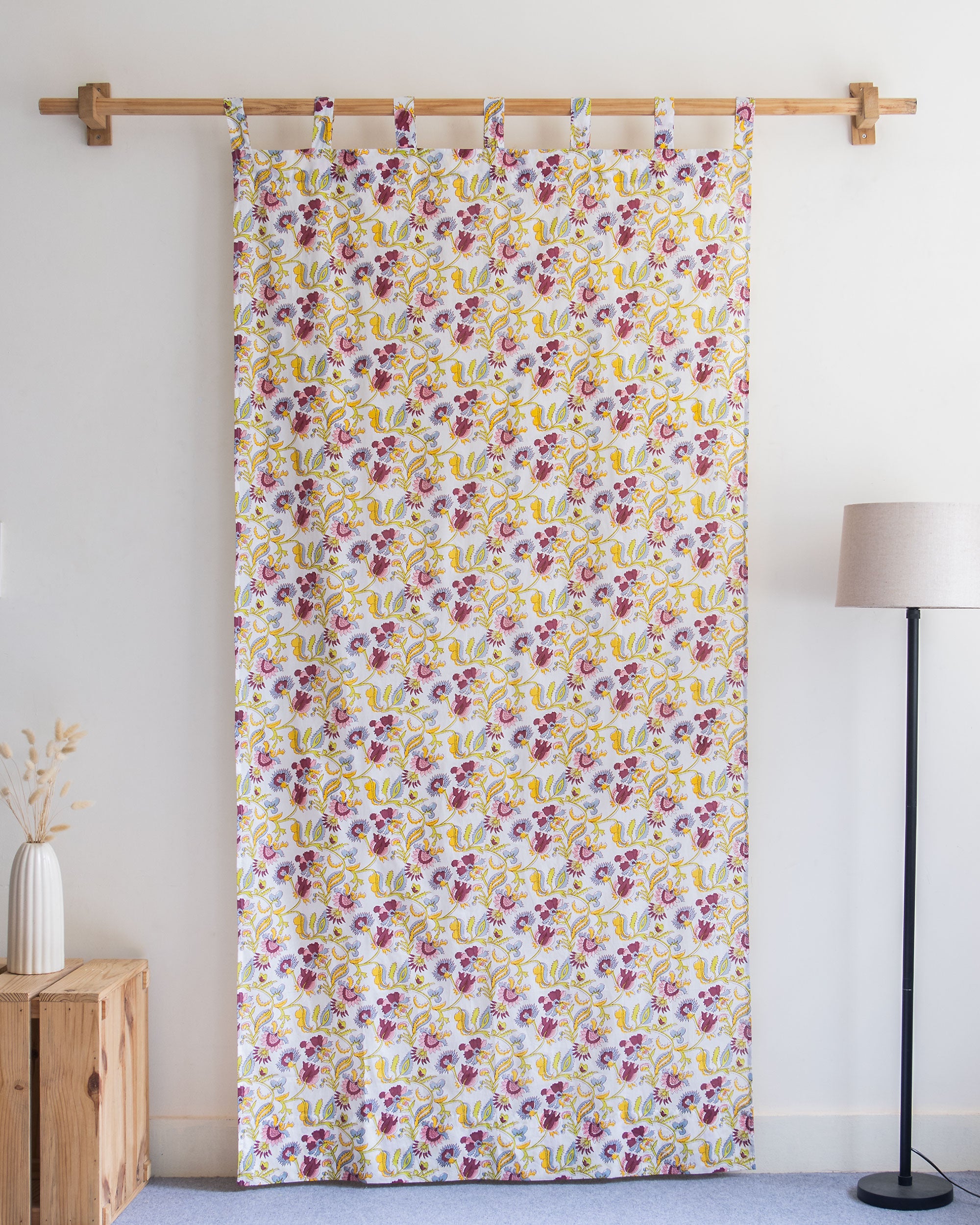 Floral Cotton Block Printed Curtains For Window