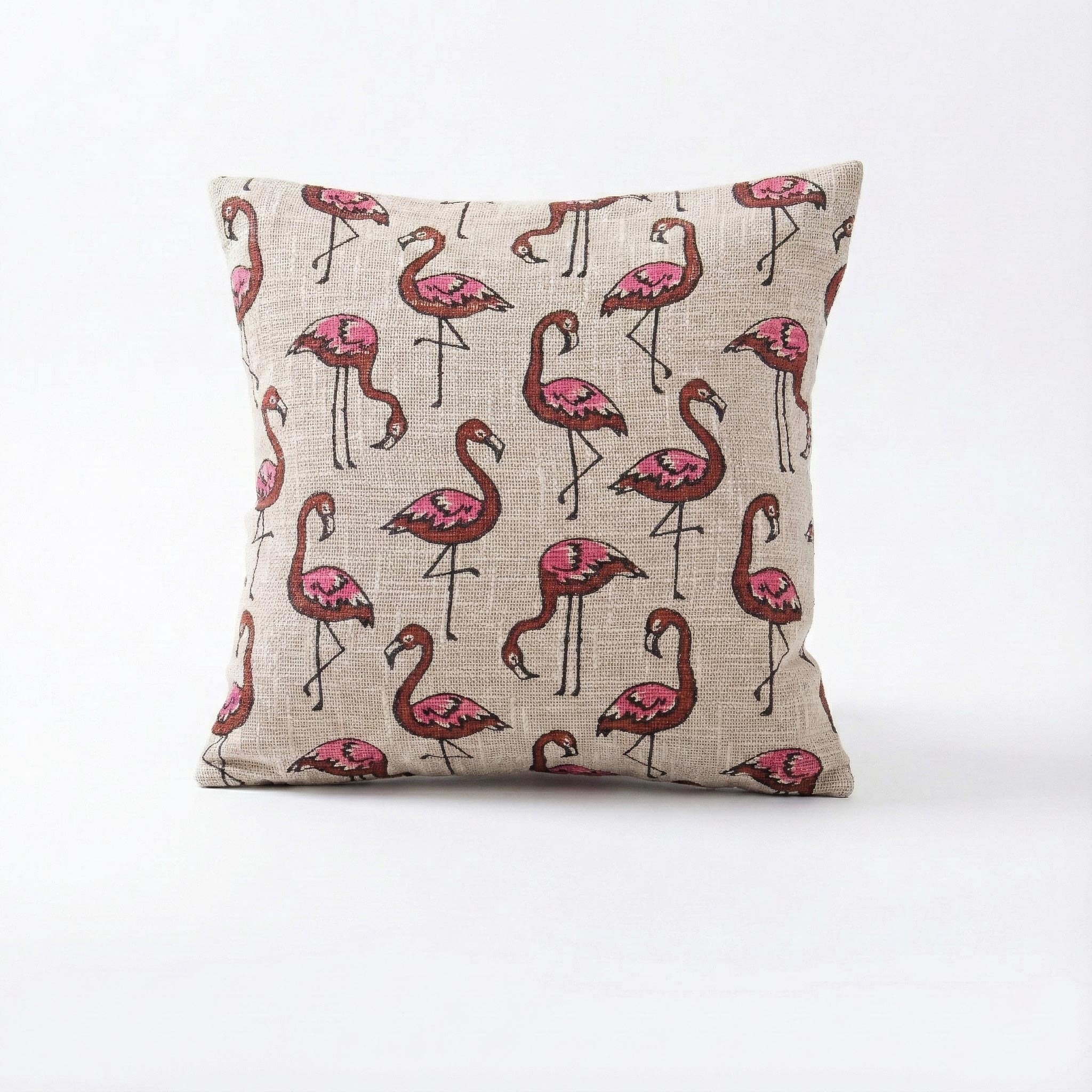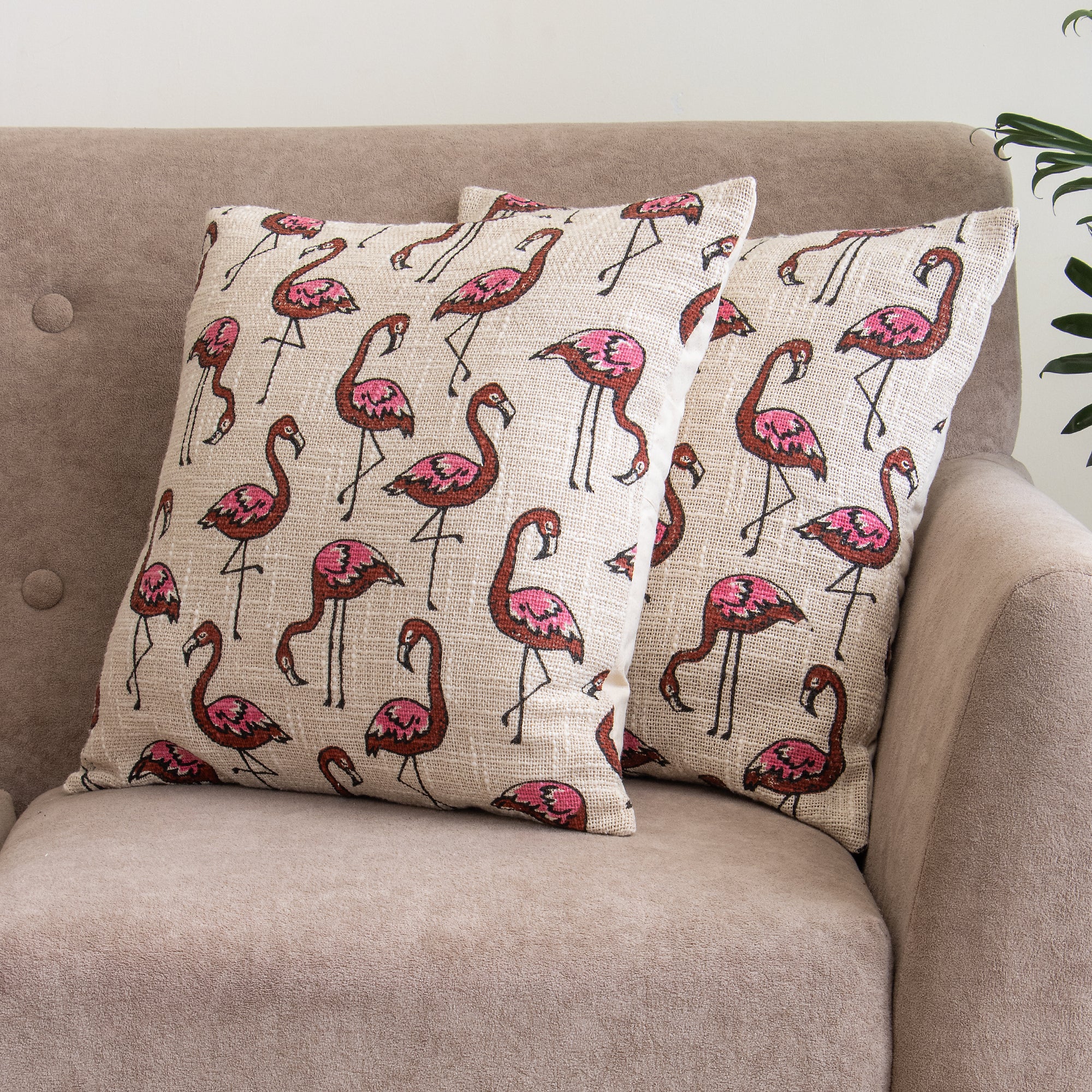 Flamingo Block Printed Cotton Chair Cushion Covers