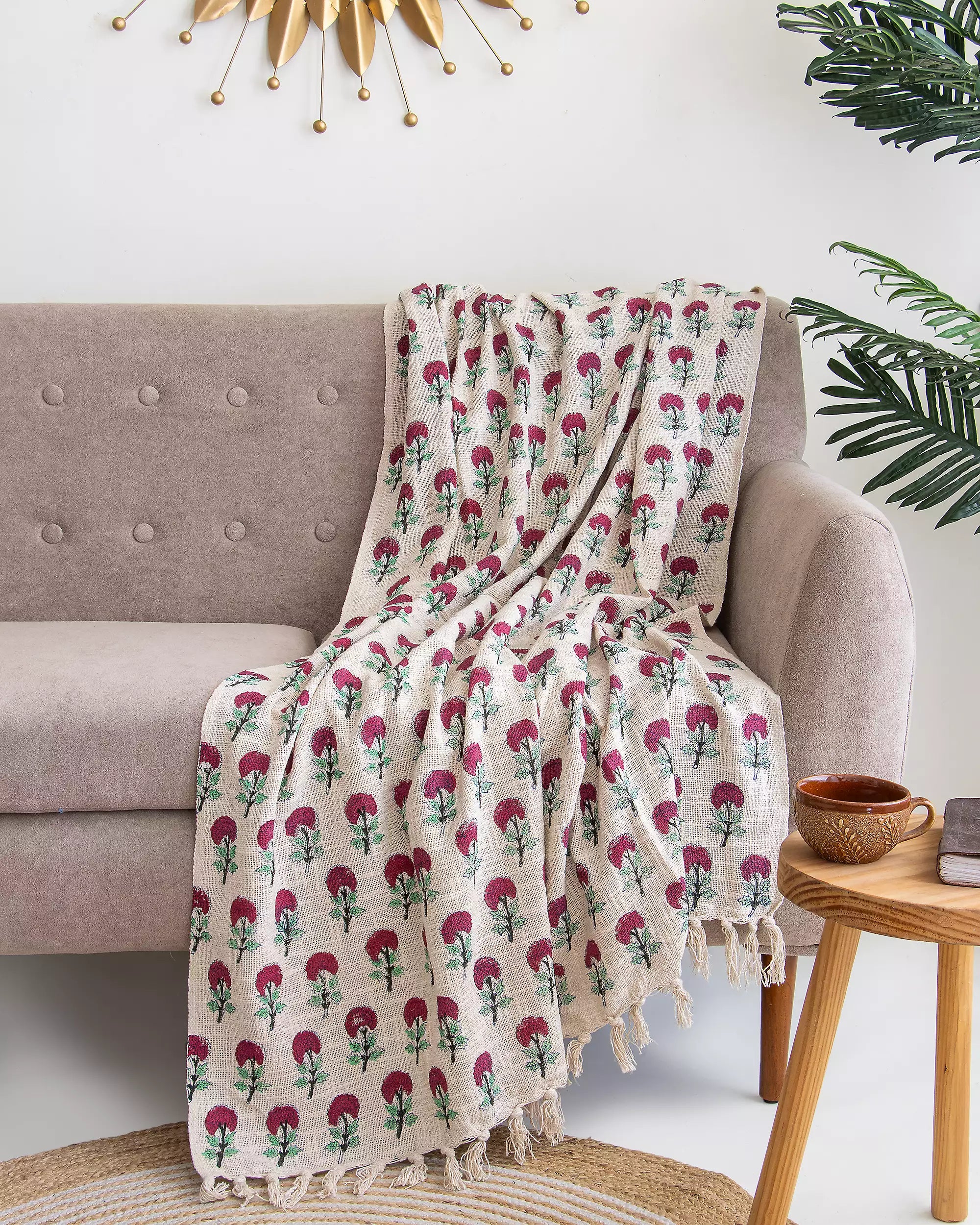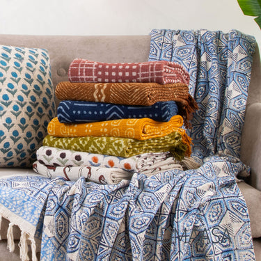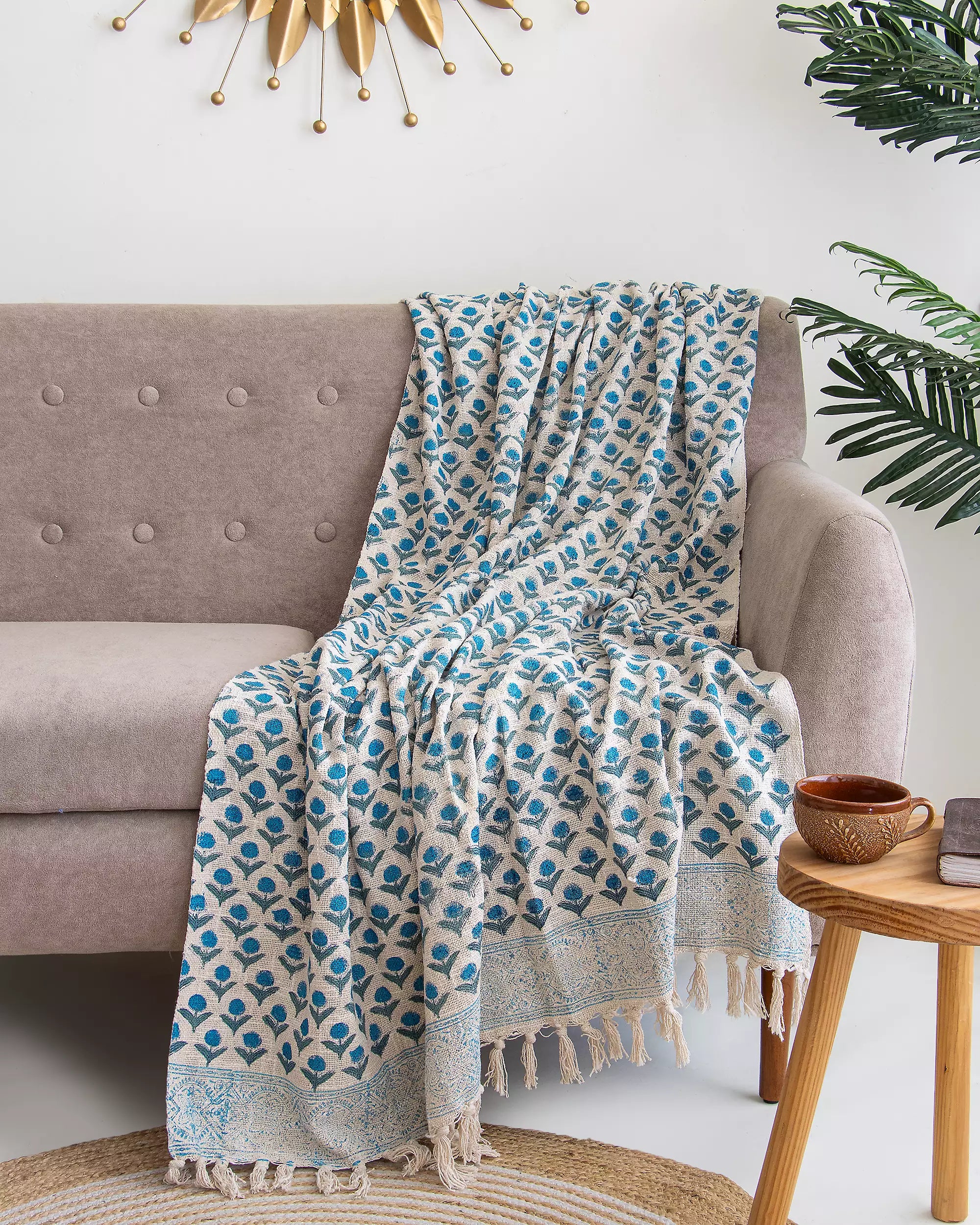 Introducing our Cotton Throw Blanket- a cosy essential for your home. The beauty of the hand block print throws is irresistible because of the plush and elegant pure cotton material and the nature-inspired designs carved out of hand block printing. The Indian handmade sofa throws spruce up the look of your sofa and interior. Embrace warmth and elegance with our cotton block print throw.