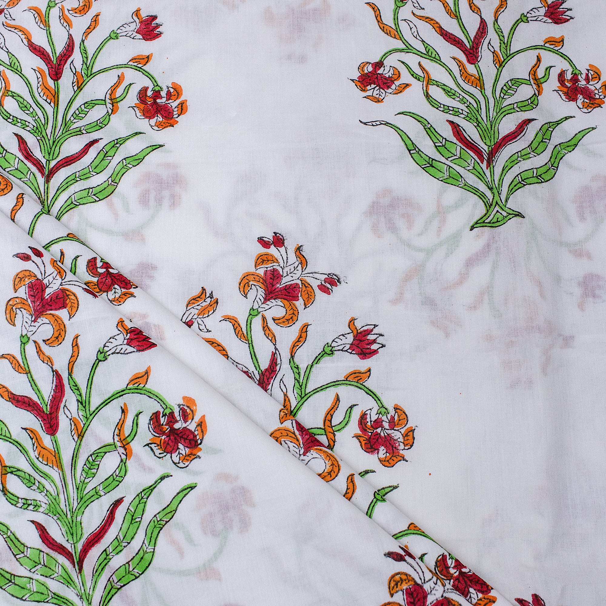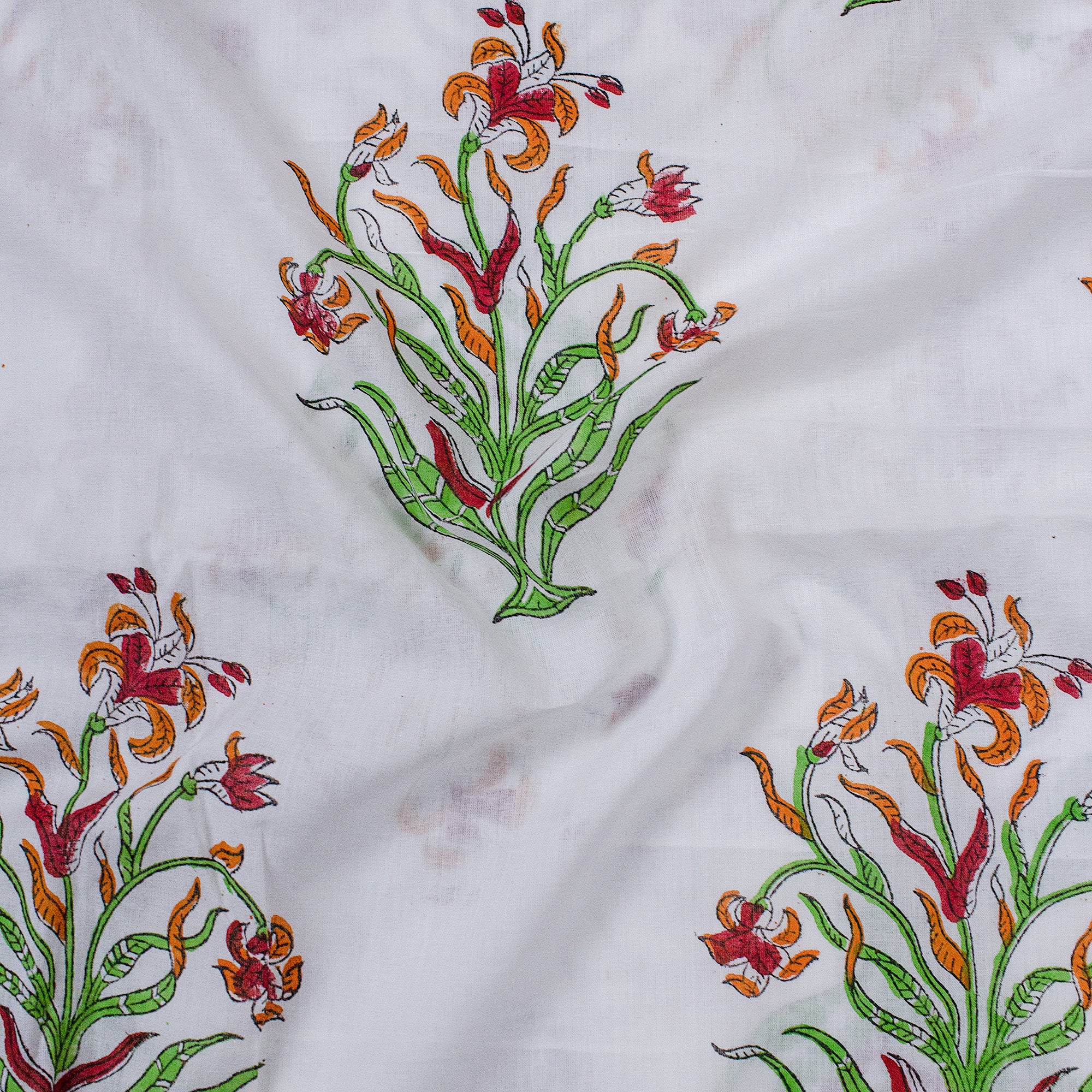 Our Hand block print fabric, crafted from 100% pure cotton, allows you to experience authentic beauty. Each piece showcases unique, artisan-created patterns like floral, Mughal, geometrical or booti prints, using natural dyes, ensuring vibrant and eco-friendly colors. Perfect for creating bespoke apparel, elegant home décor, or unique craft projects. To preserve its natural beauty, gently hand wash in cold water separately or Dry clean, line dry in shade.