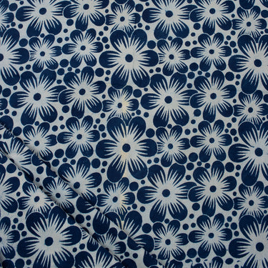 Block Floral Printed Indigo Blue Cotton Fabric