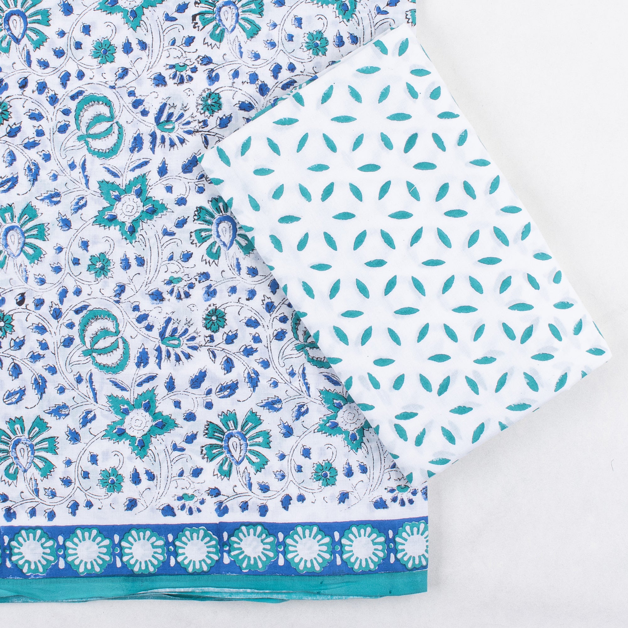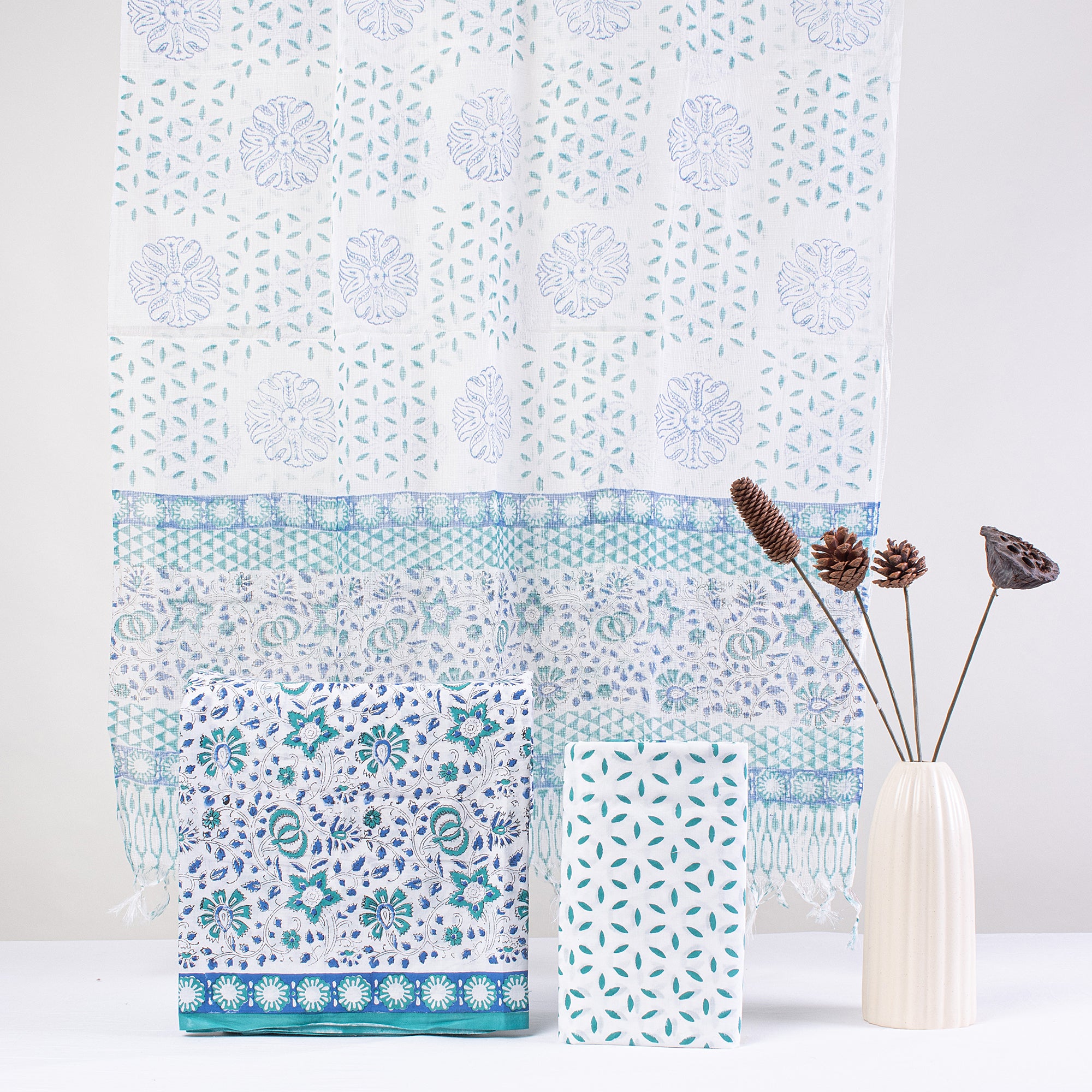 Block Floral Printed Cotton Suit With Kota Doria Dupatta