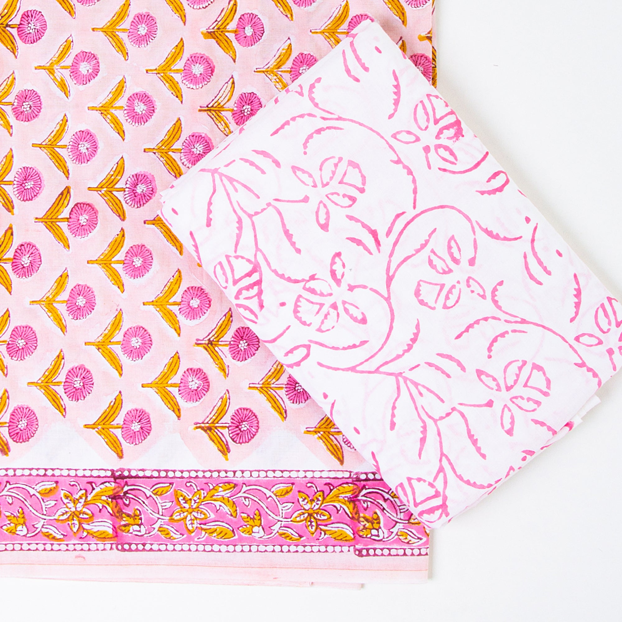 Block Printed Unstitched Suit Material With Cotton Dupatta