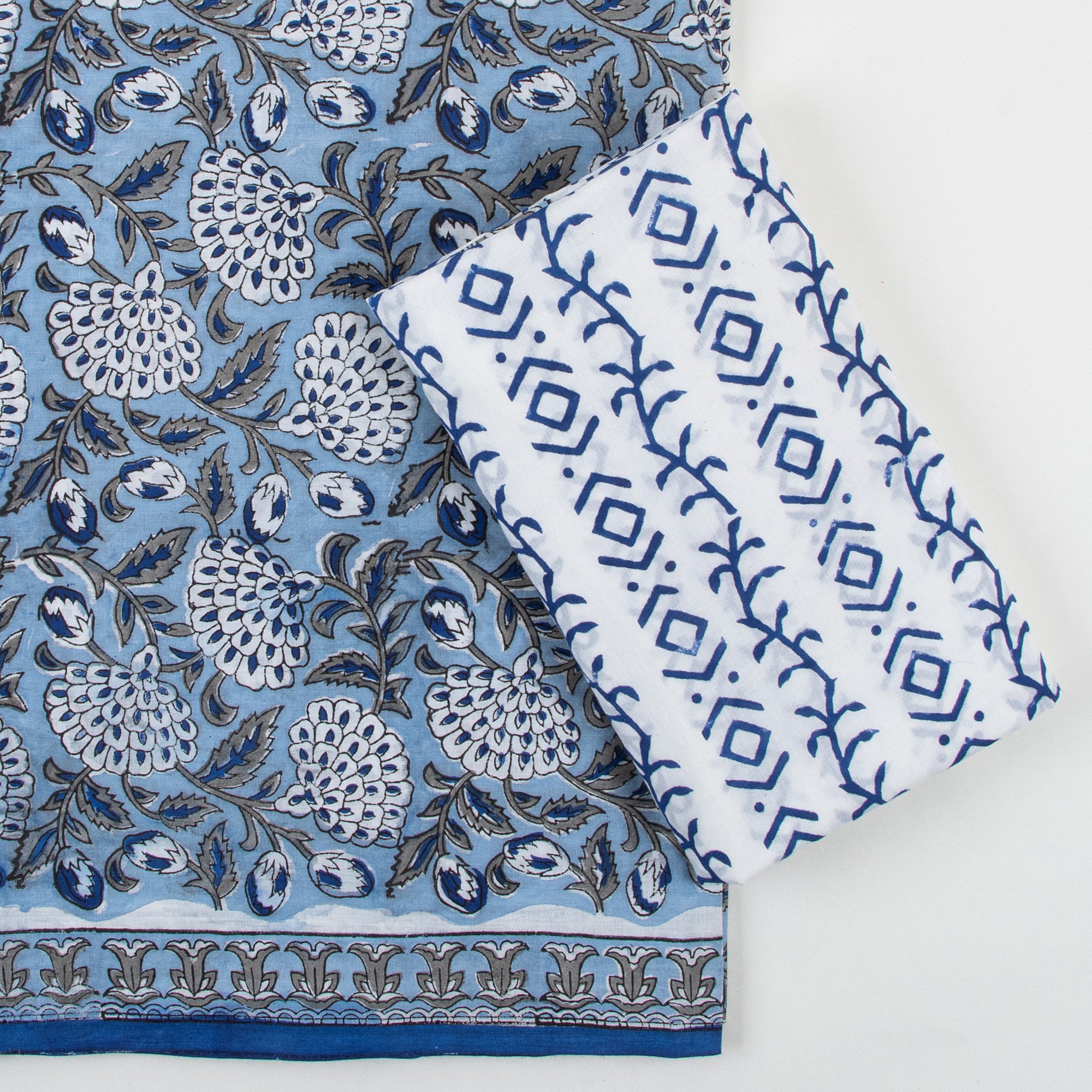 Blue Cotton Suits For Women With Chanderi Dupatta