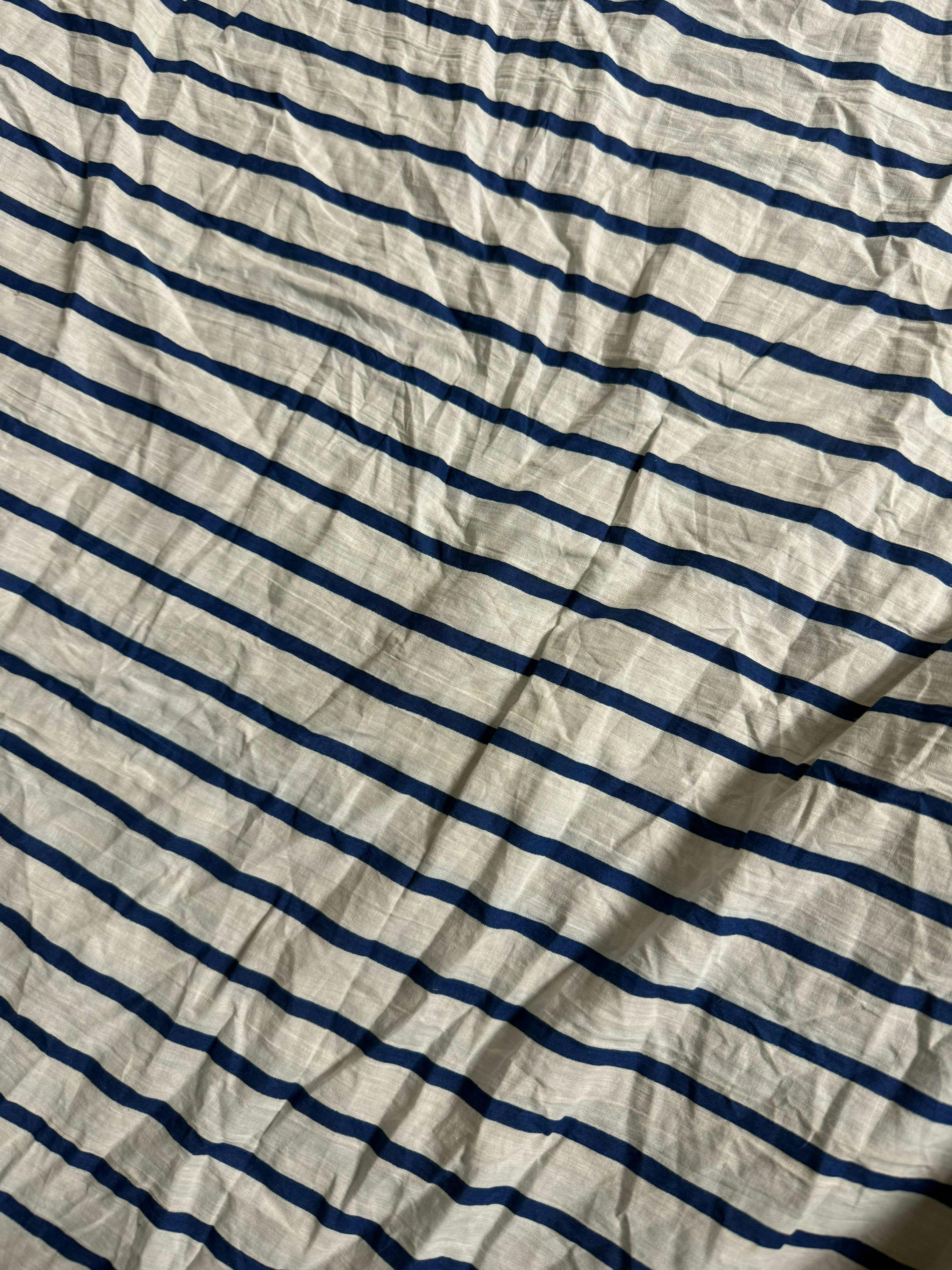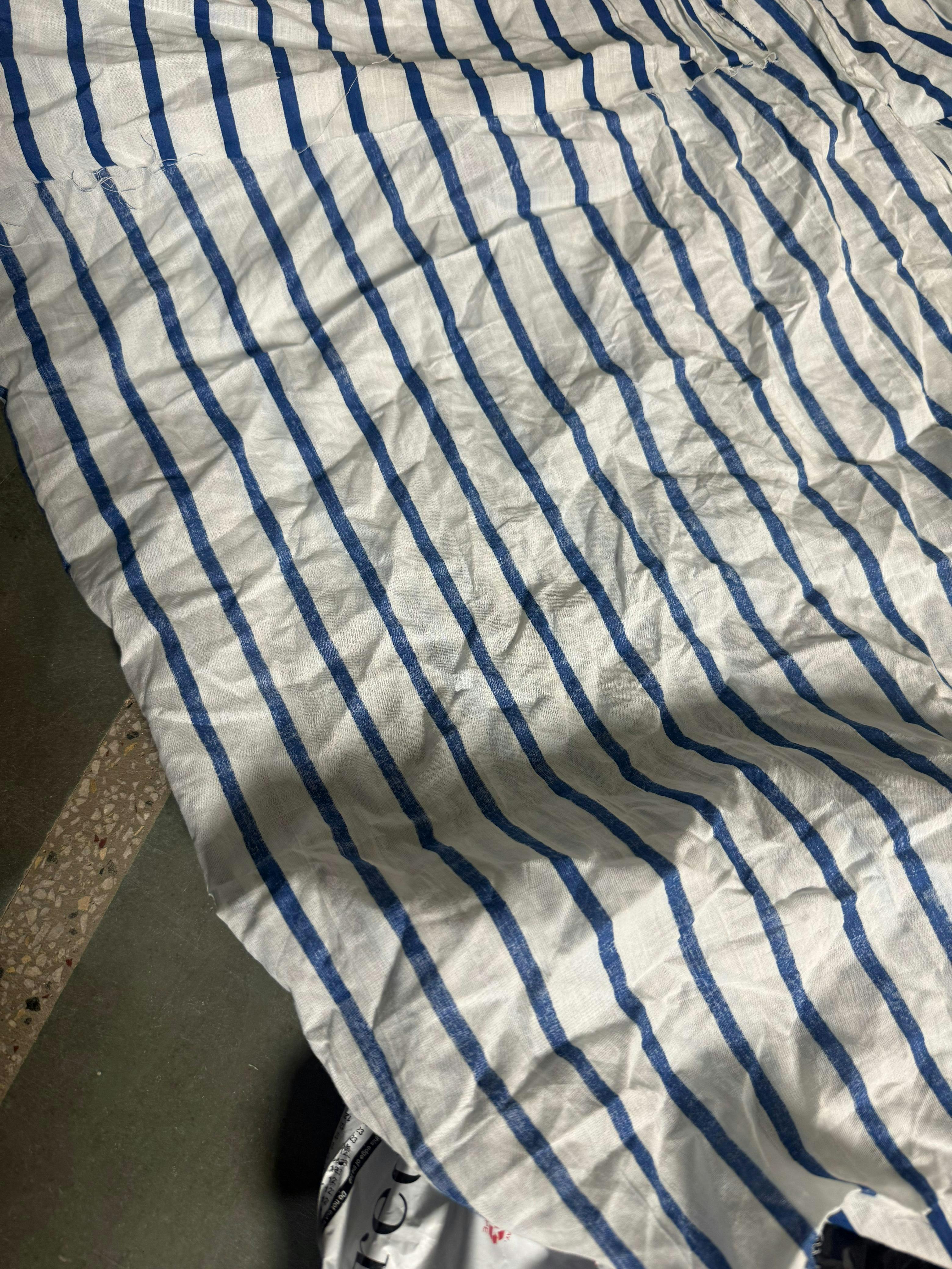 Blue Striped Soft Cotton Hand Block Print Fabric