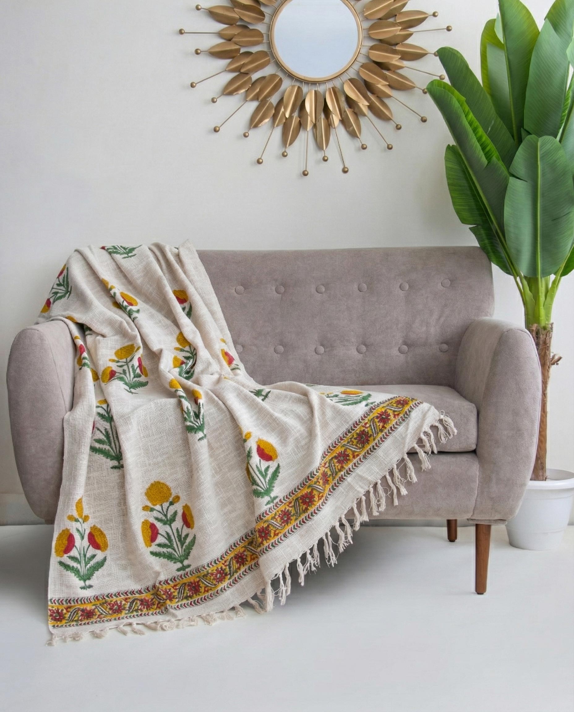 Introducing our Cotton Throw Blanket, a cozy and timeless essential designed to elevate your home decor. Made from handloom cotton, this throw features beautiful hand block printed, nature-inspired motifs, carefully crafted by skilled artisans. Soft, plush, and breathable, this handcrafted throw adds warmth and visual charm to sofas, beds, or lounge spaces. Its elegant texture and artisanal detailing make it perfect for both everyday comfort and decorative styling. Bring home a piece that reflects India’s rich hand-printing heritage while embracing sustainable craftsmanship.