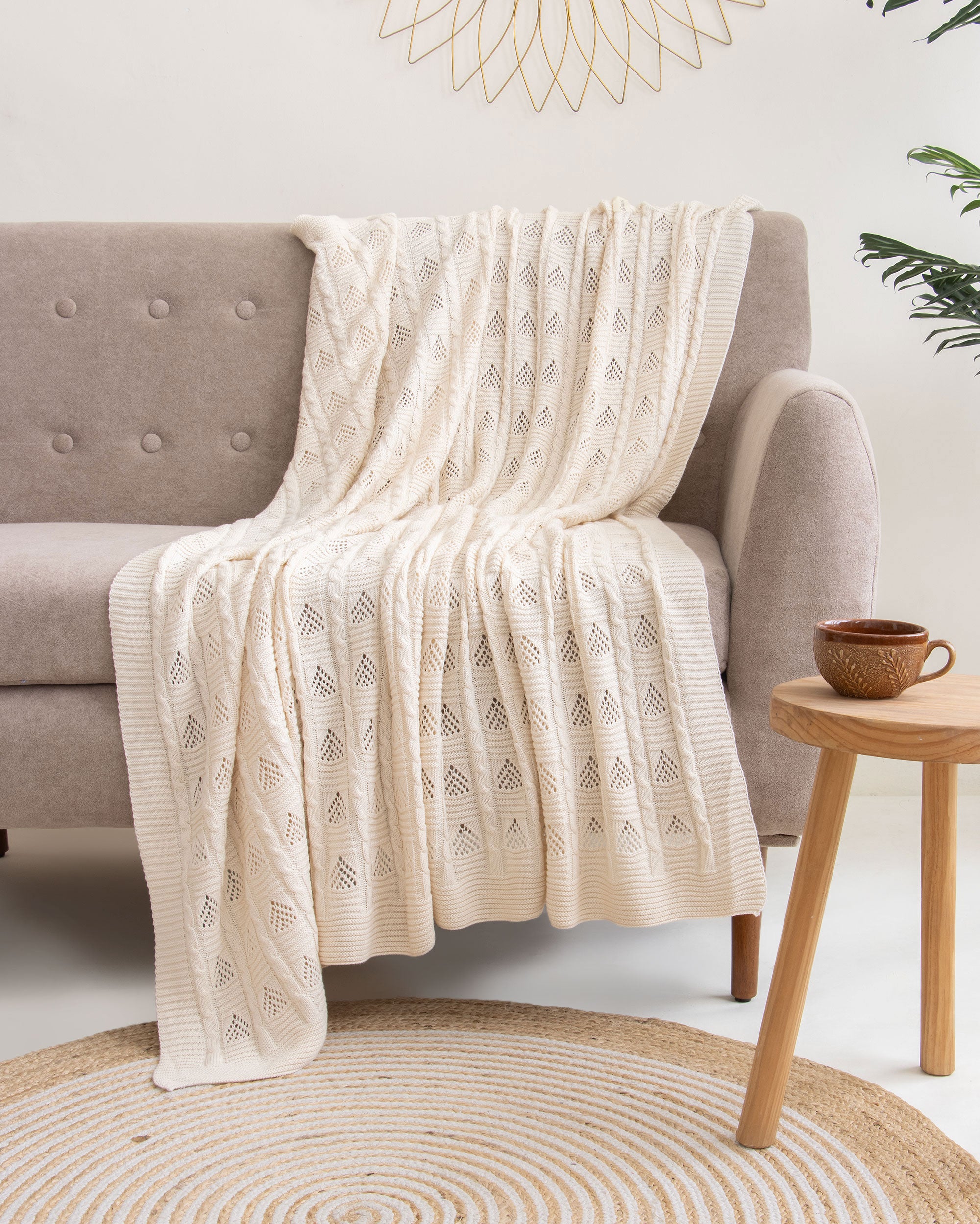 A versatile blend of comfort and style for your home, introduce our Cotton knit throw blankets.