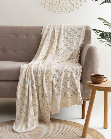 Their knitted texture makes an enticing contrast when draped over your sofa, giving your living area a stylish yet cosy feel. In addition to being aesthetically pleasing, these knitted blanket throw are hypoallergenic and breathable, which promotes good health and a comfortable night's sleep or relaxing evening on the sofa. With the perfect balance of our Cotton knitted throw, you may elevate both your decor and well-being.