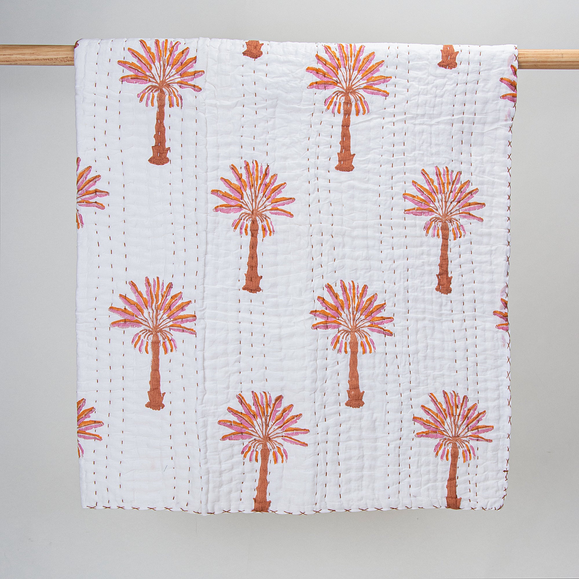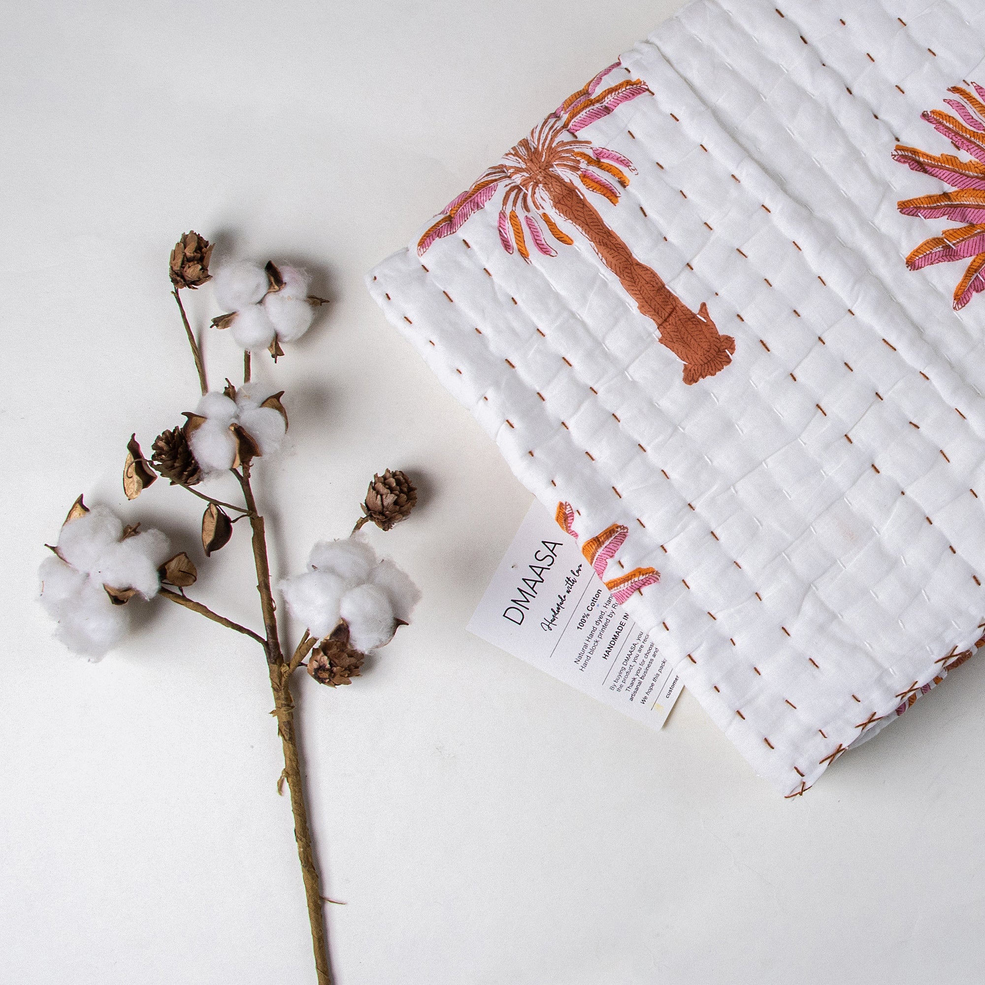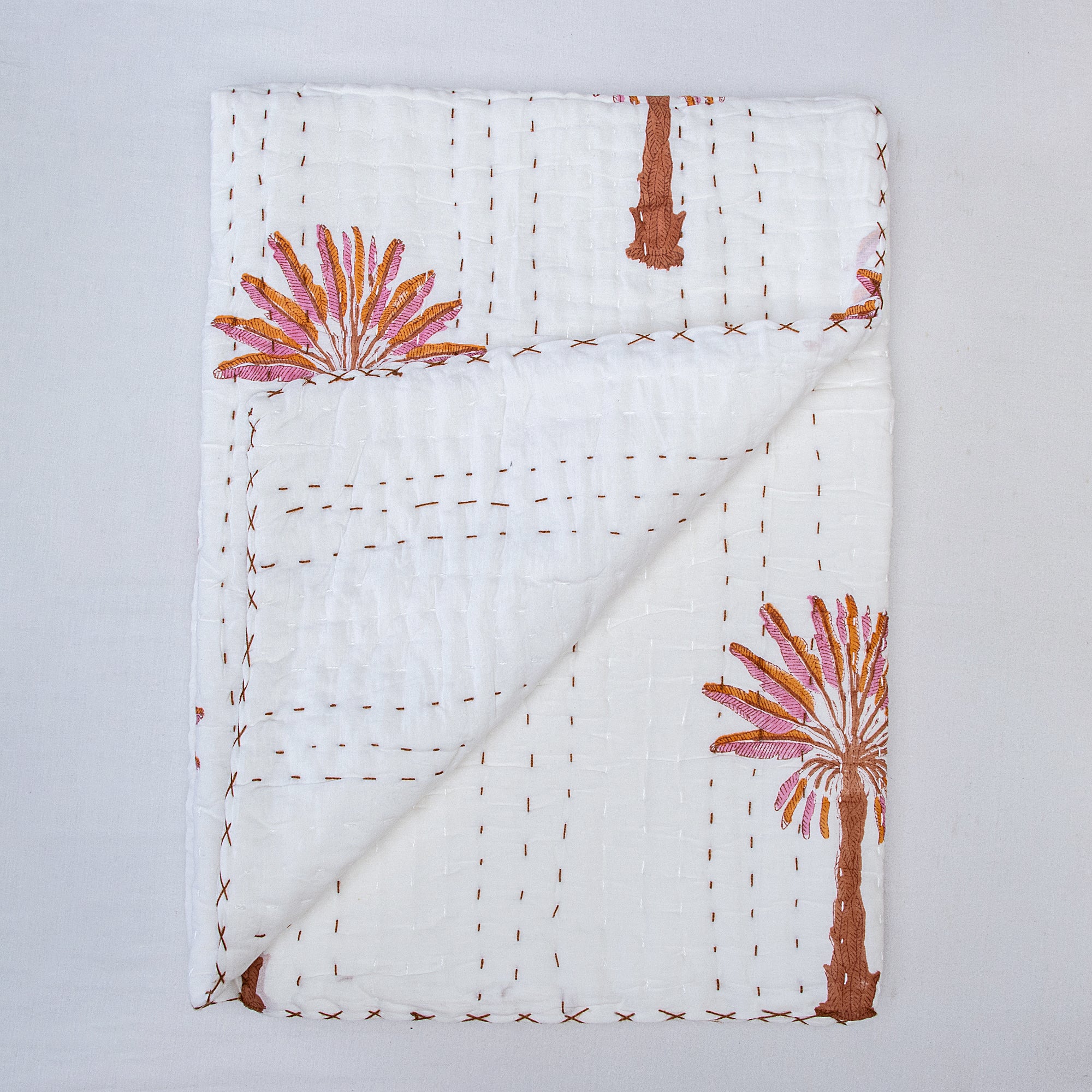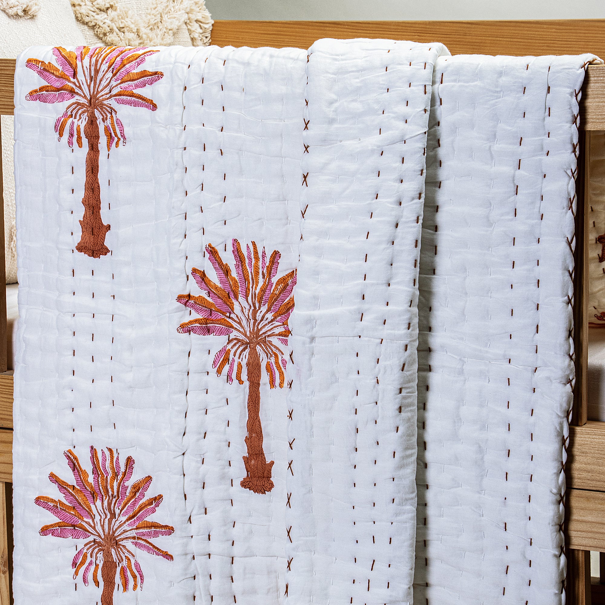 Eco-Friendly Cotton Kantha Baby Blankets Palm Tree Print