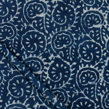 Hand Block Floral Print Indigo Cotton Canvas Fabric