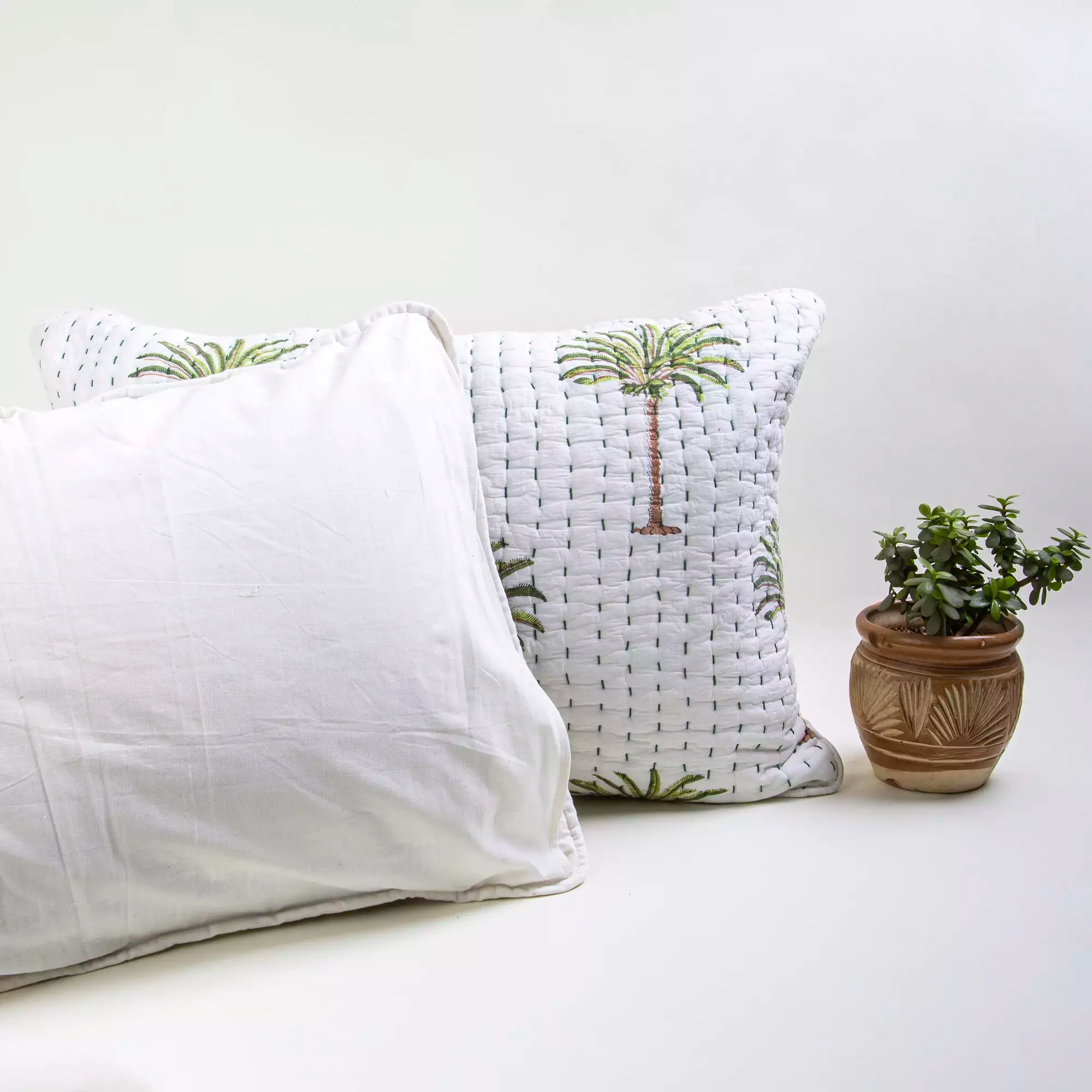 Cotton Quilted Pillow Cover is a decorative and functional textile accessory designed to encase and protect a pillow. It is characterized by a layer of padding, often made of pure organic cotton that is stitched or quilted to the fabric to create a textured, raised pattern. Cotton pillow covers not only add visual interest but also enhance the cover's durability and provide a cushioning effect. DMAASA’s bed pillow covers come in various designs, patterns, and colors, offering a stylish way to accessorize and update the look of pillows while providing a comfortable surface for relaxation.