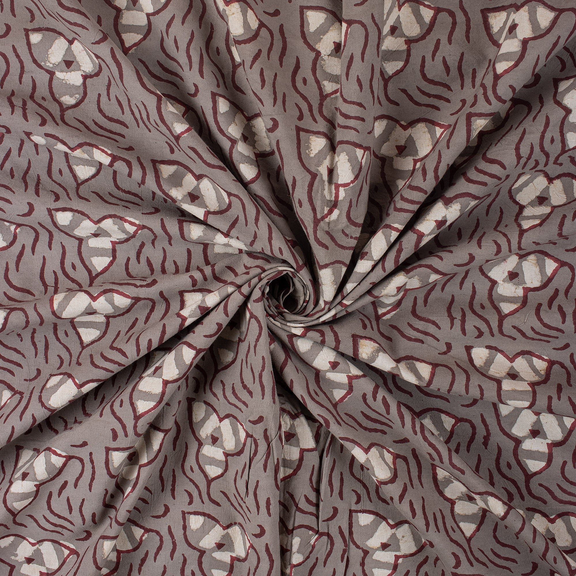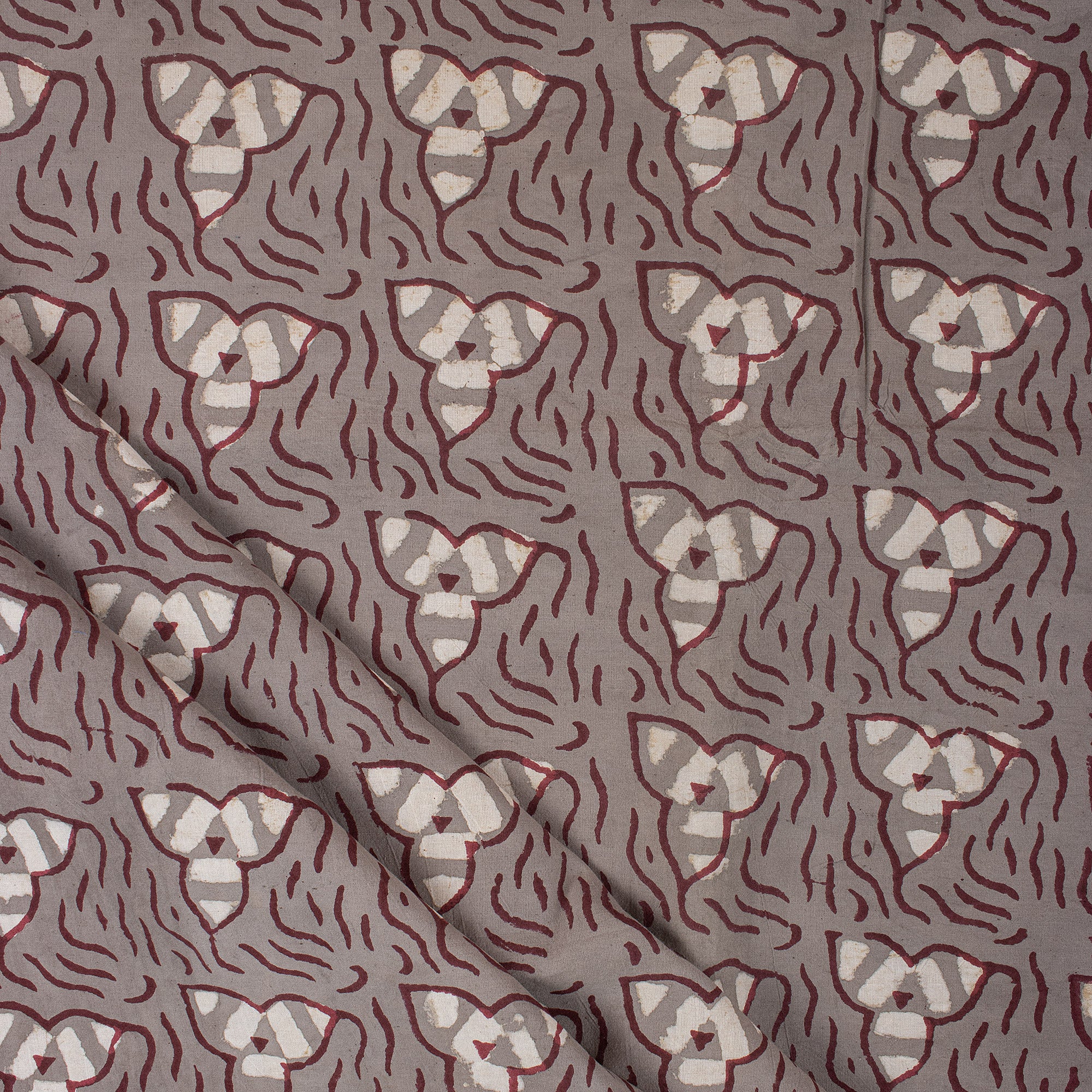 Grey Floral Cotton Dabu Kashish Printed Fabric