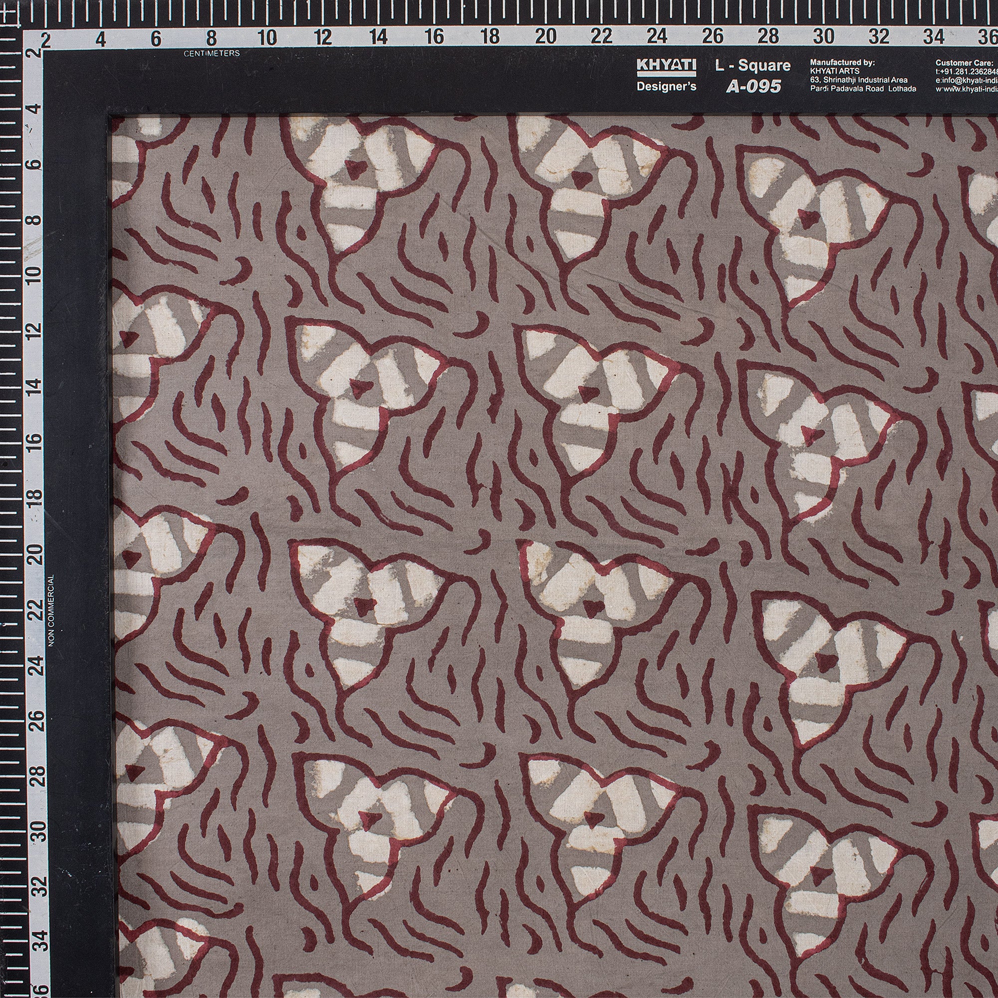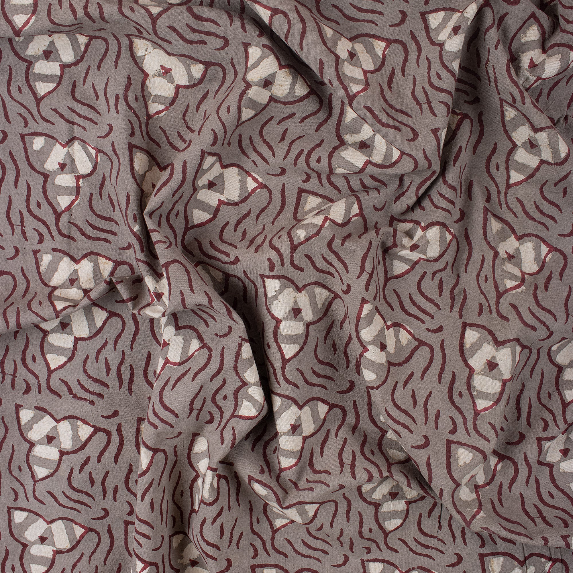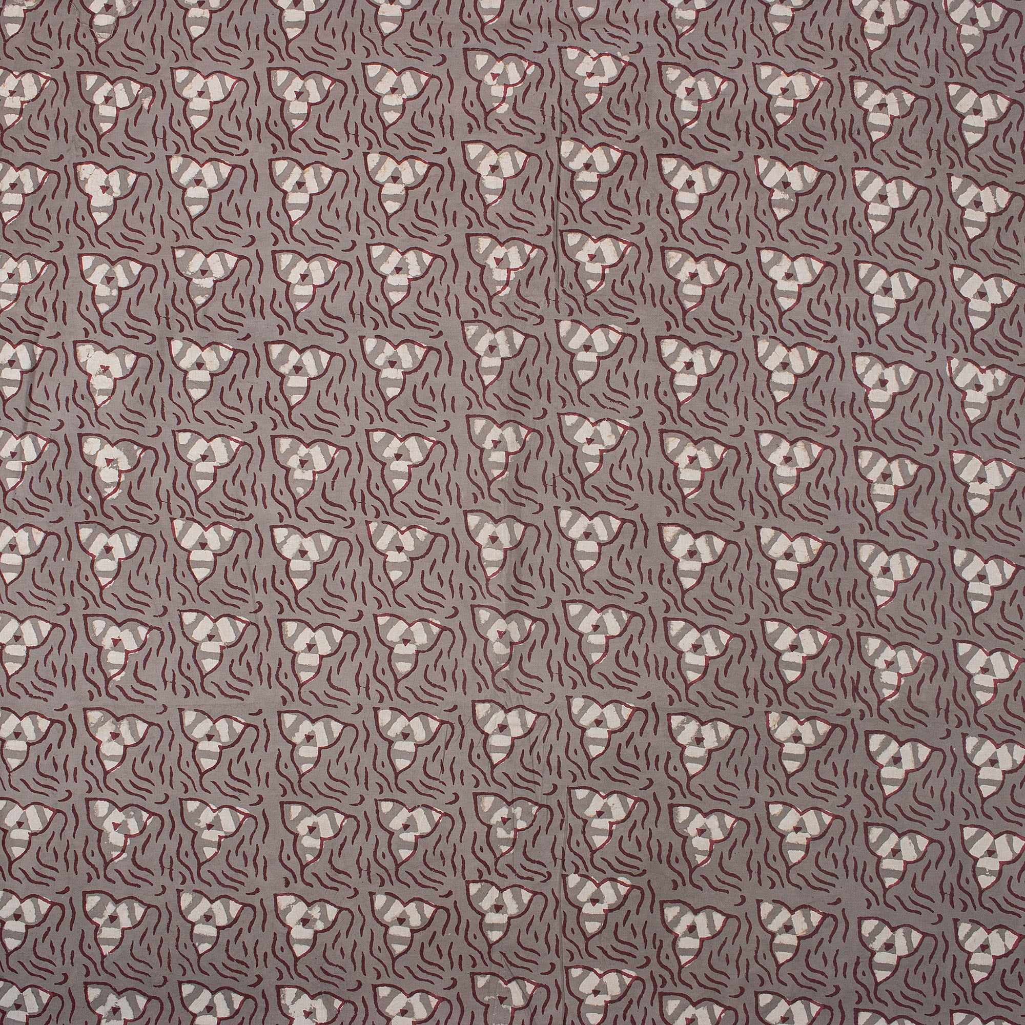 An eco-friendly Cotton Kashish Fabric that showcases intricate block printing in natural grey-brown hues. it's a beautiful blend of tradition and comfort. Made from 100% cotton, our Cotton Kashish Fabric is perfect for crafting ethnic wear, home accents, and sustainable accessories. The magic of Kashish comes alive through Dabu printing - a heritage craft where mud resist meets natural dye for timeless elegance.