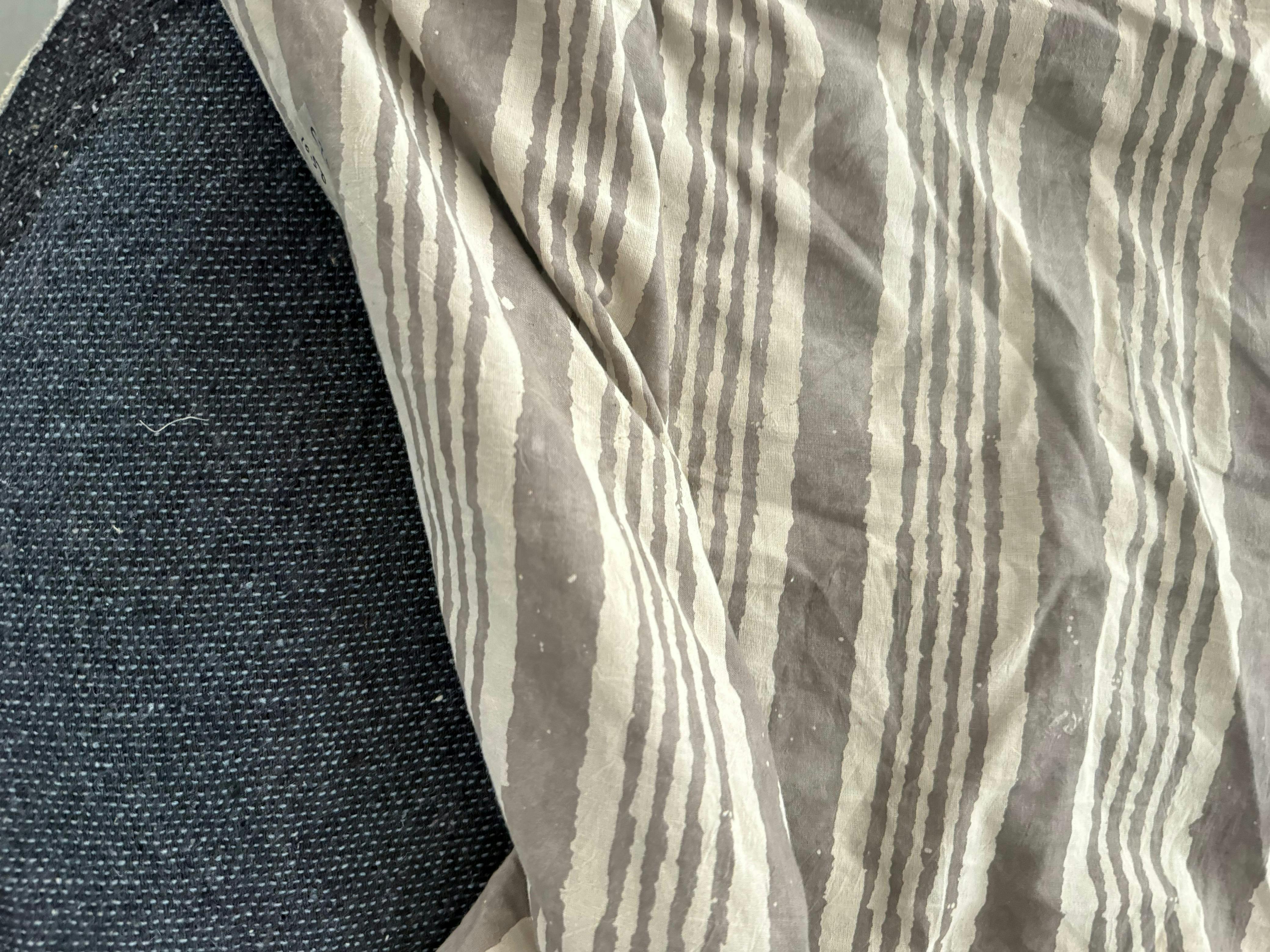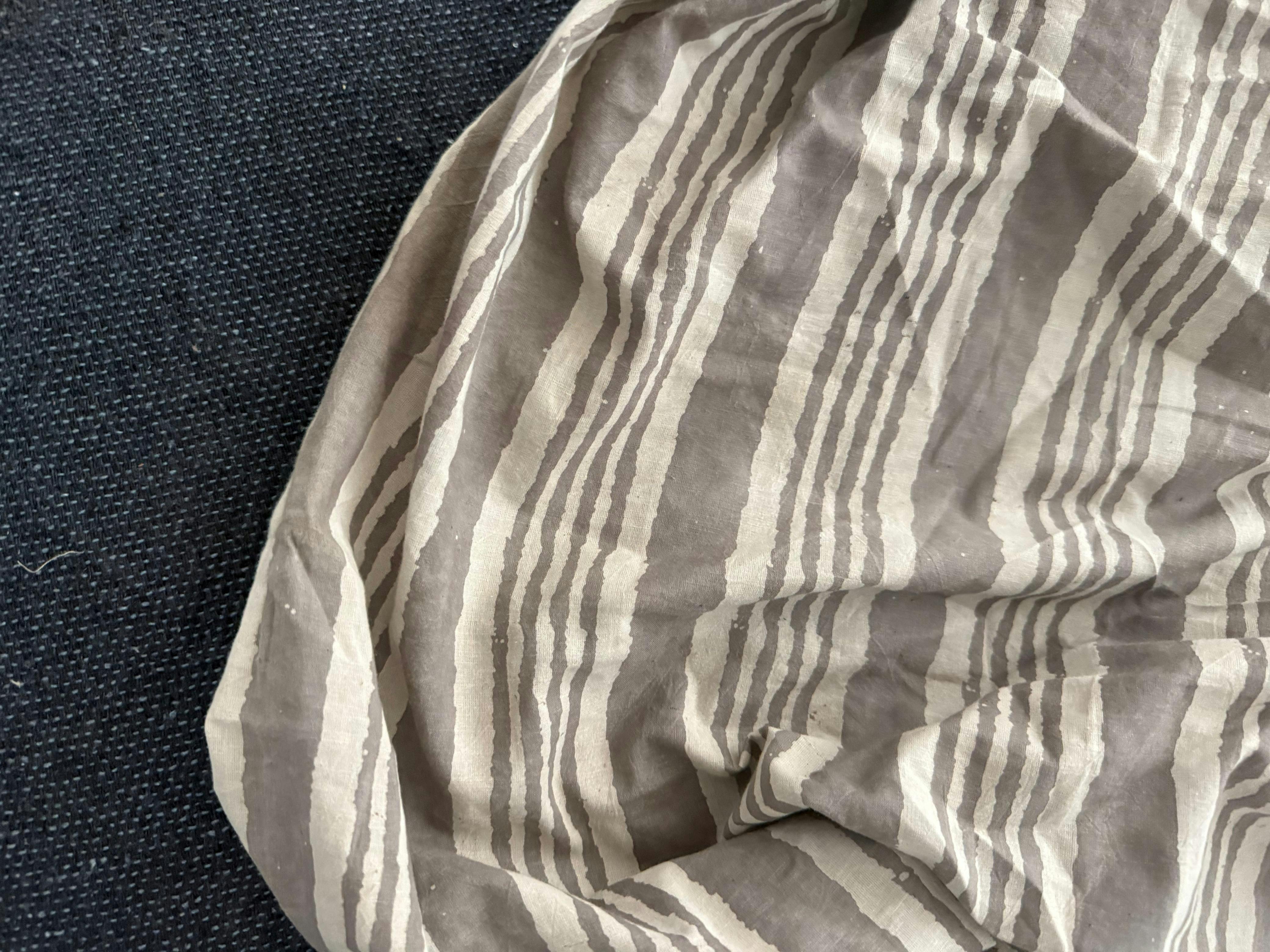 Grey Strip Hand Block Dabu Kashish Cotton Fabric