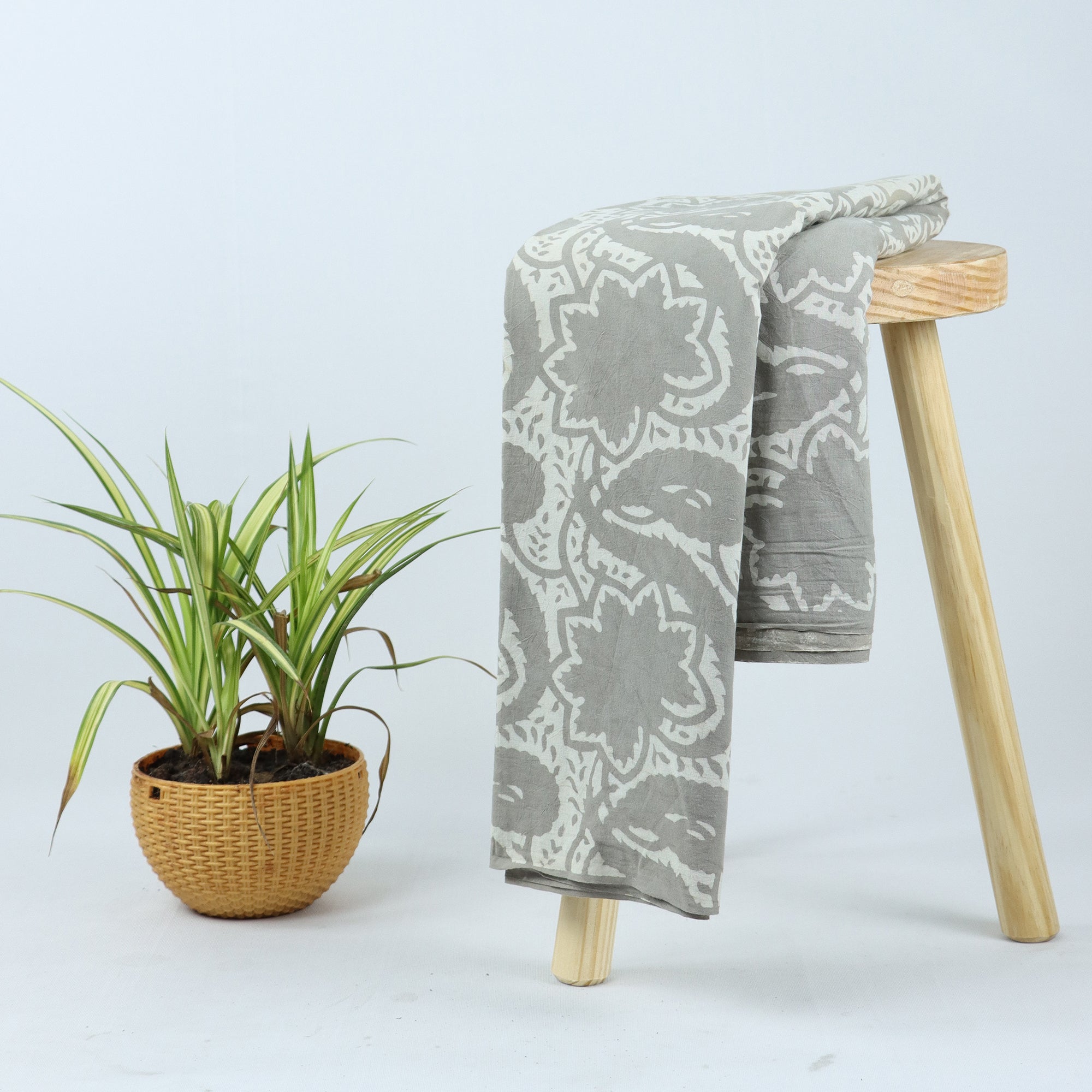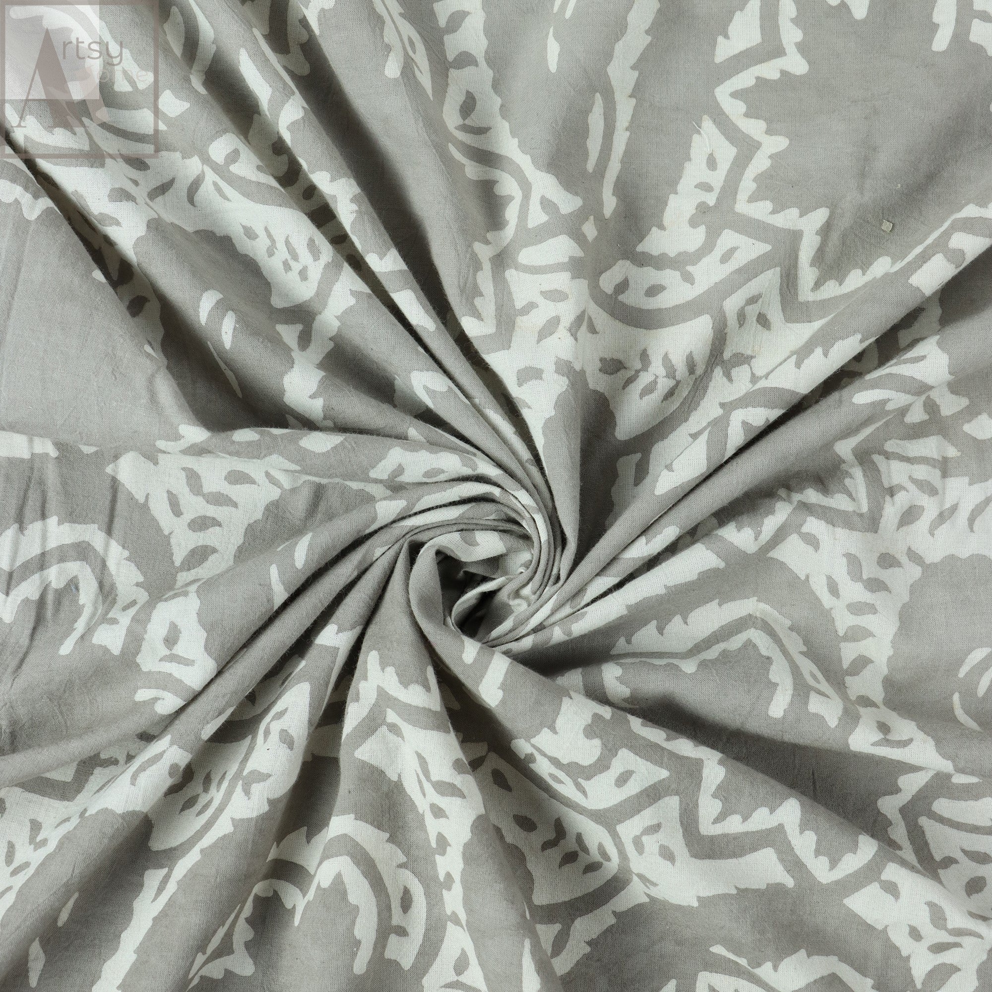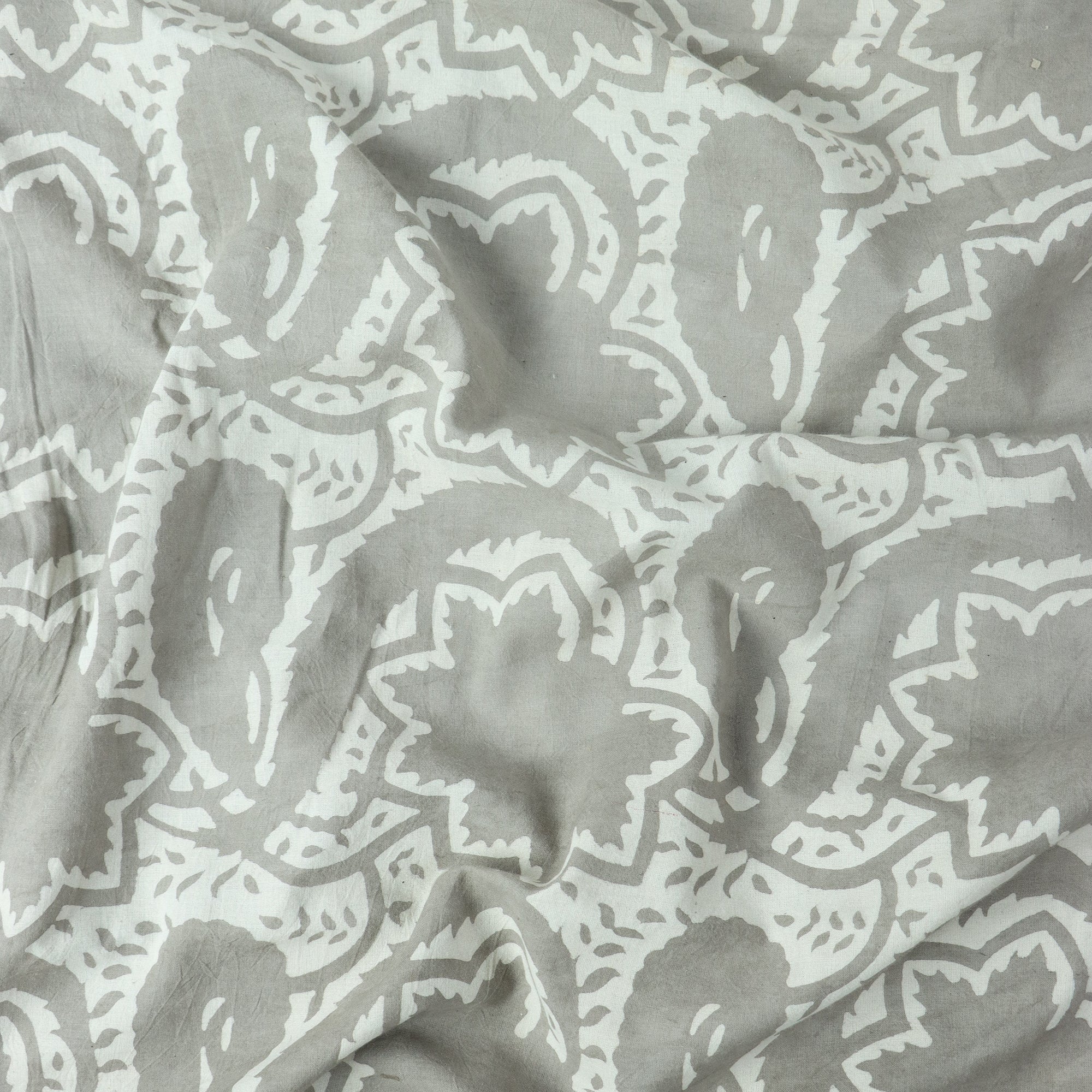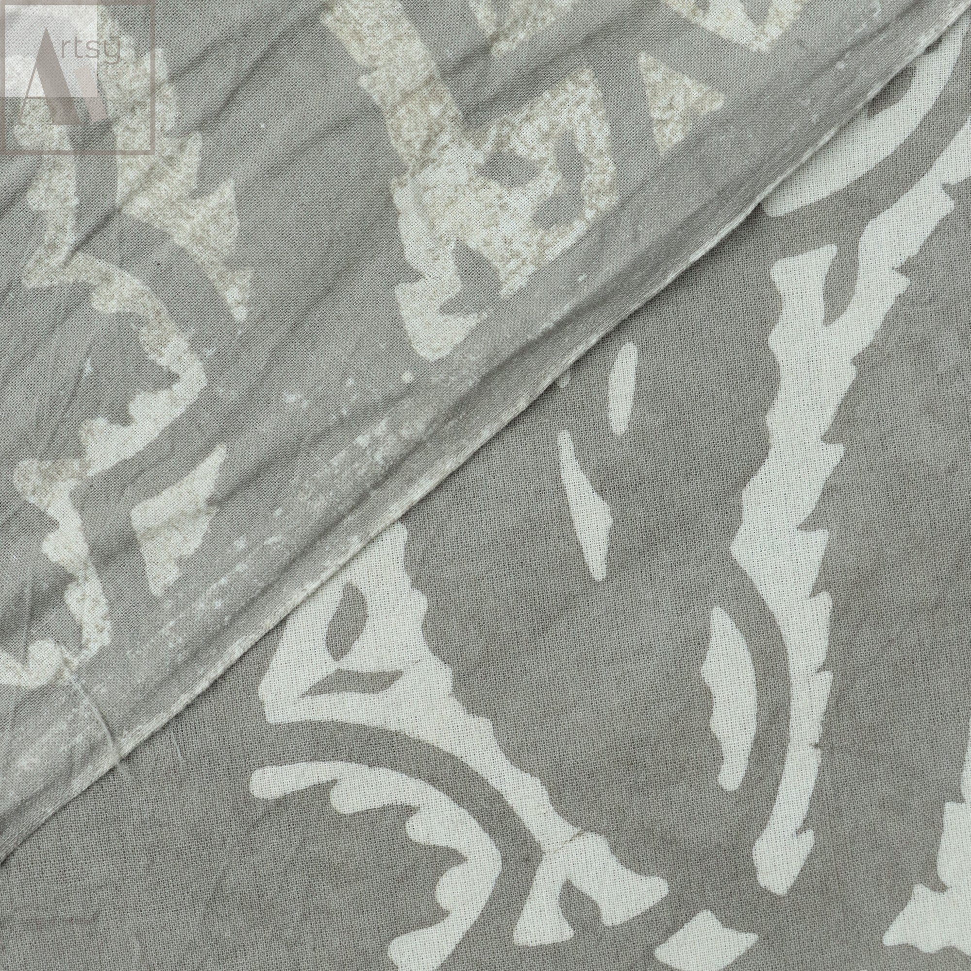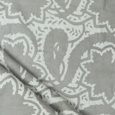 An eco-friendly Cotton Kashish Fabric that showcases intricate block printing in natural grey-brown hues. it's a beautiful blend of tradition and comfort. Made from 100% cotton, our Cotton Kashish Fabric is perfect for crafting ethnic wear, home accents, and sustainable accessories. The magic of Kashish comes alive through Dabu printing - a heritage craft where mud resist meets natural dye for timeless elegance.