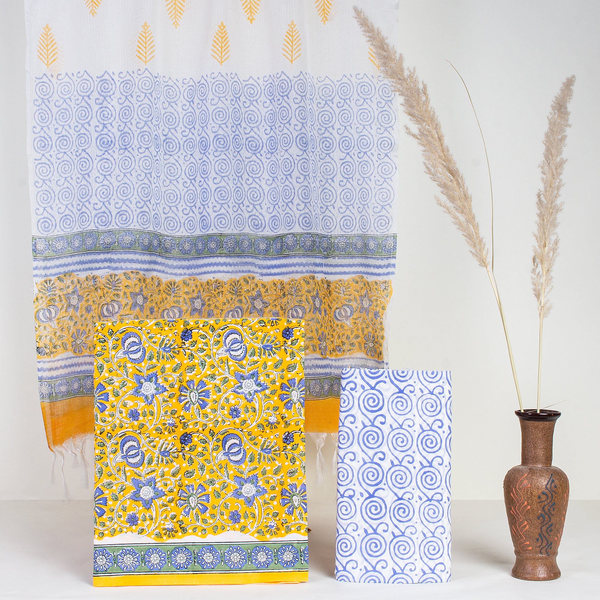 Beautiful Hand Block Print Cotton Suit With Kota Doria Dupatta