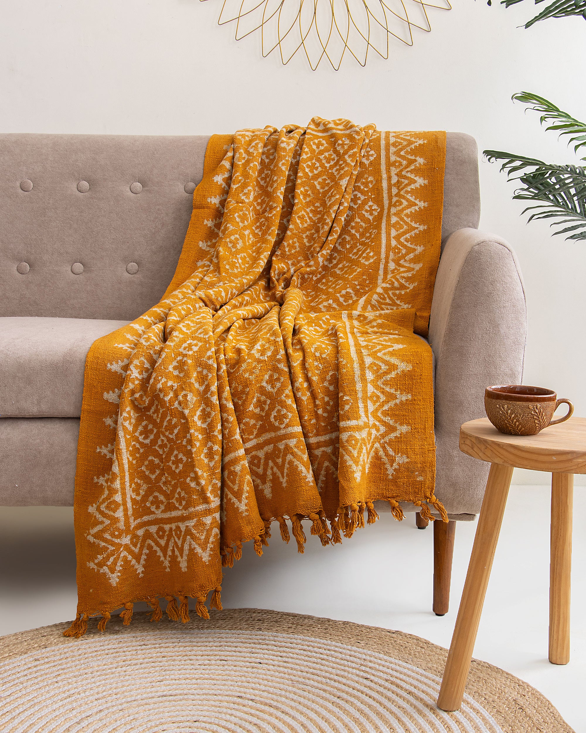 Introducing our Cotton Throw Blanket- a cosy essential for your home. The beauty of the hand block print throws is irresistible because of the plush and elegant pure cotton material and the nature-inspired designs carved out of hand block printing. The Indian handmade sofa throws spruce up the look of your sofa and interior. Embrace warmth and elegance with our cotton block print throw.
