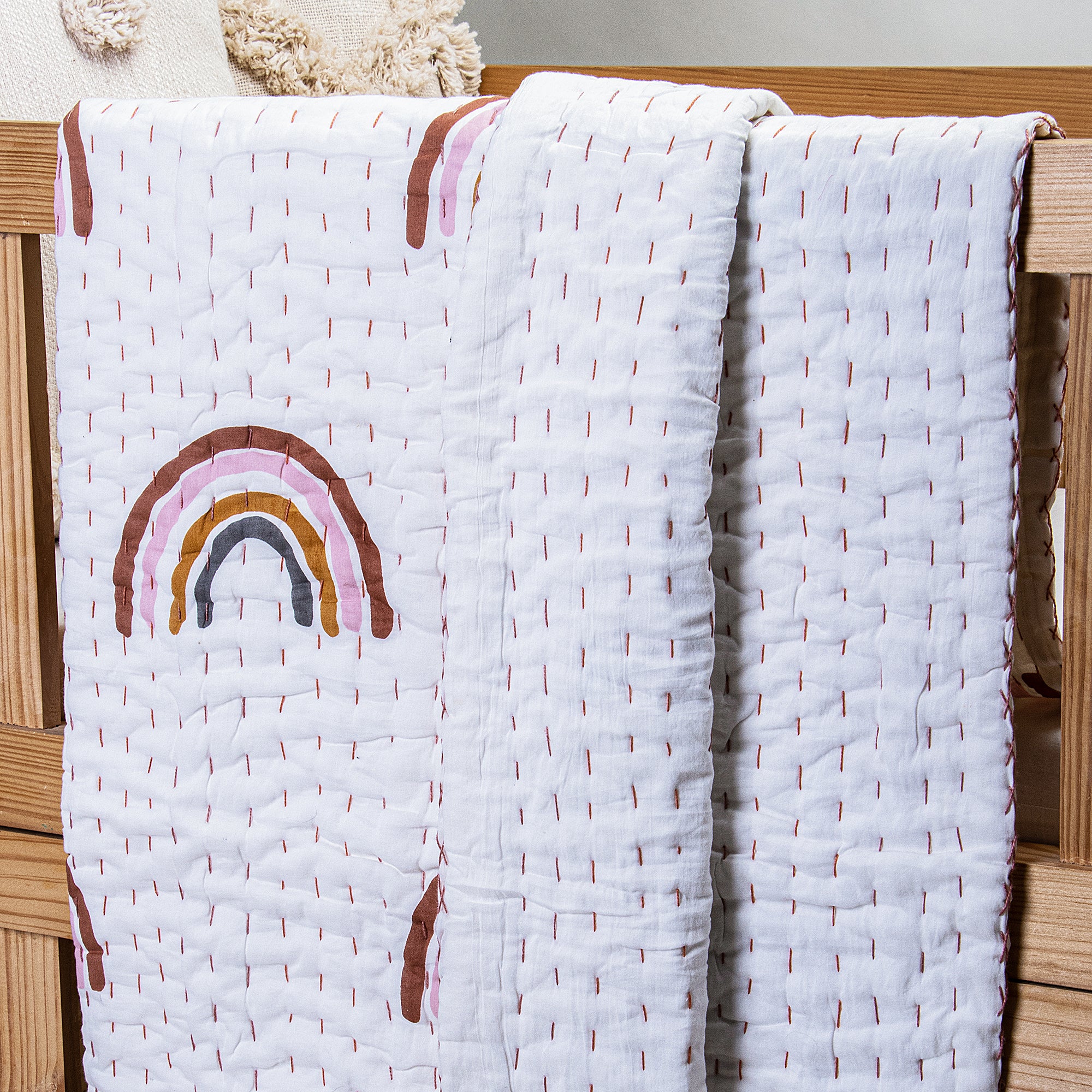A collection of baby quilts and blankets showcasing a delightful array of designs and fabrics, each piece crafted with meticulous care and creativity. From whimsical patterns featuring playful animals to timeless geometric motifs, these baby quilt patterns are a perfect blend of charm and comfort for your little one. The diverse selection of fabrics includes muslin baby blankets and cotton baby blankets, ensuring a tactile and visually engaging experience. Whether adorned with cheerful polka dots or soothing floral arrangements, each baby blanket set is a unique and cosy masterpiece, adding a touch of warmth and style to any nursery.