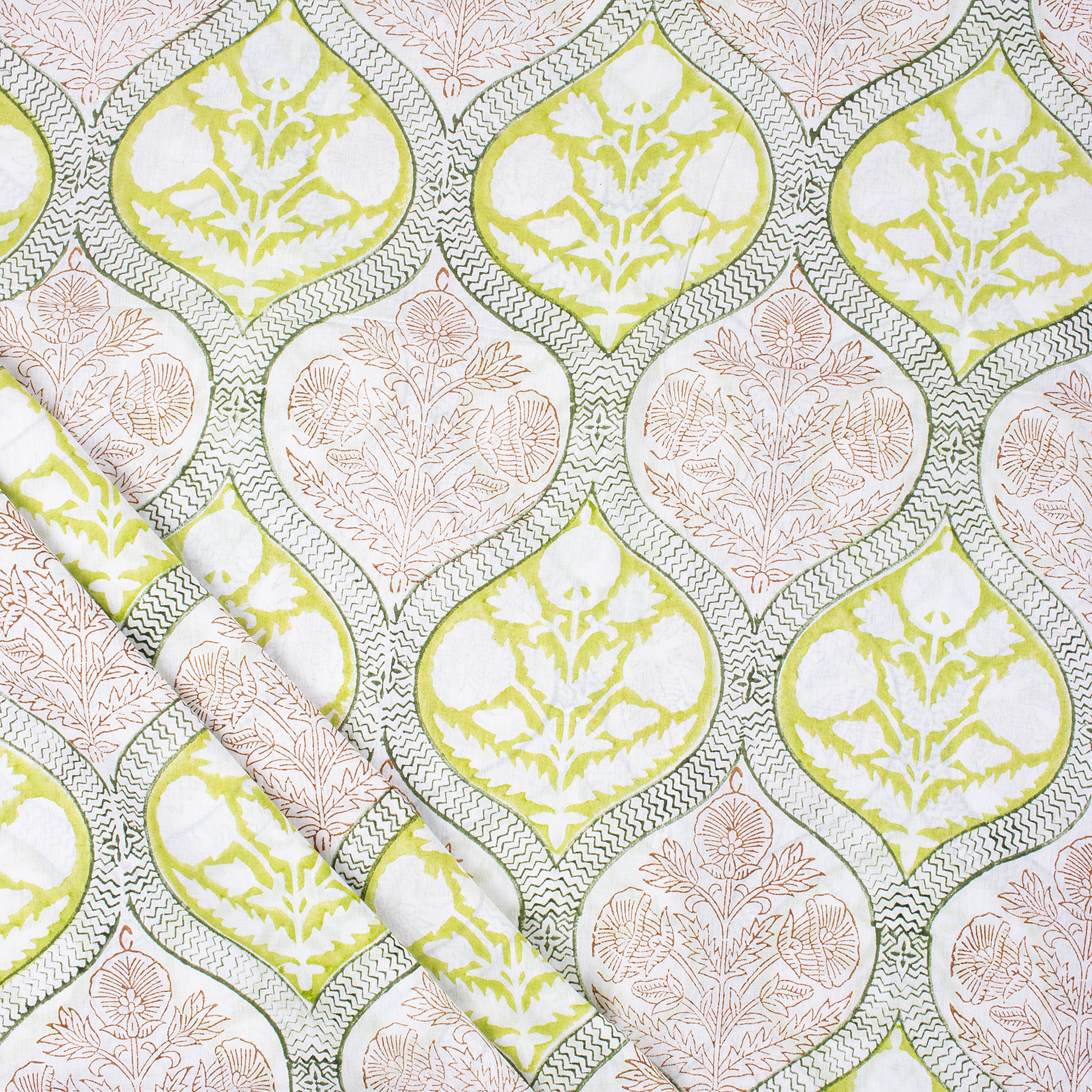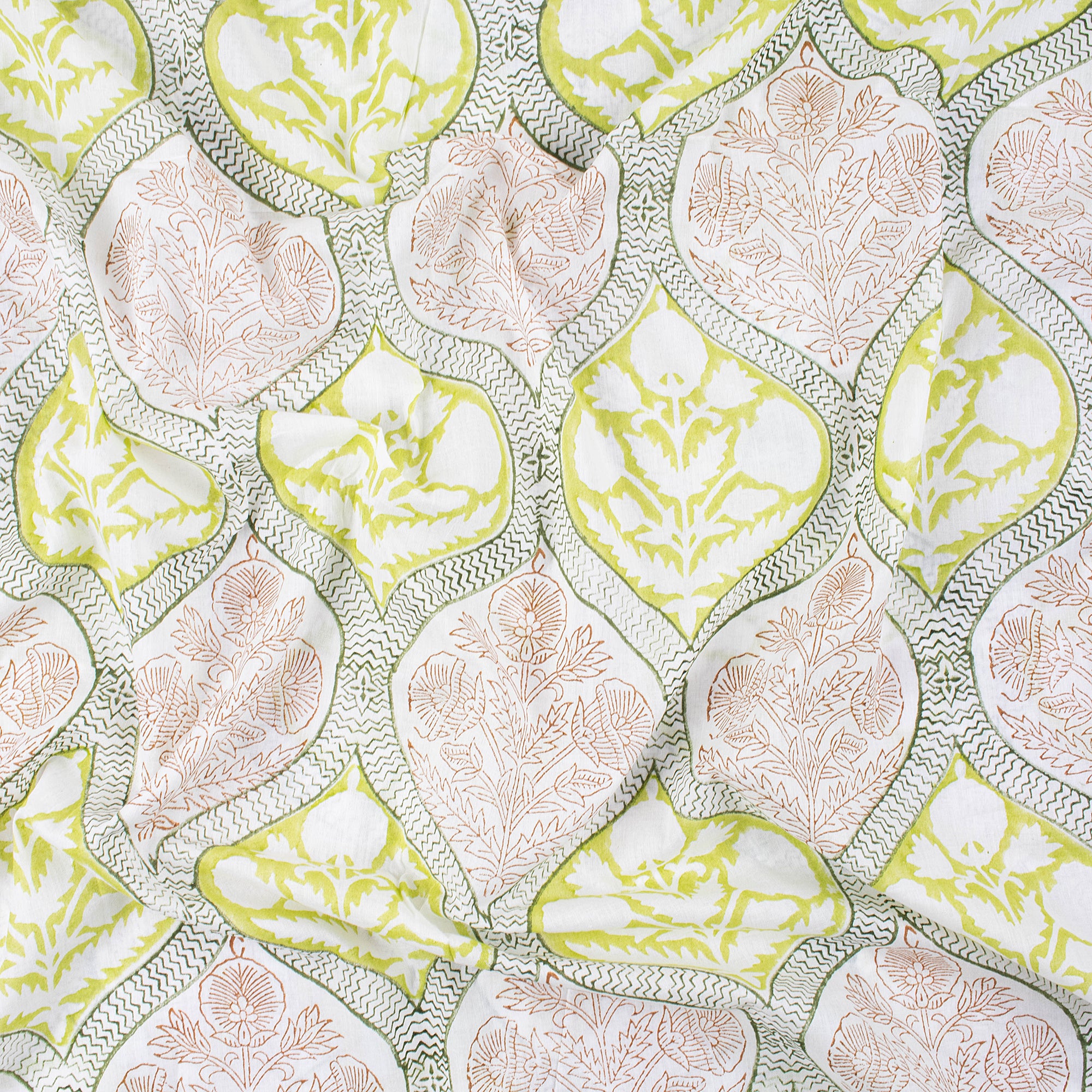 Our Hand block print fabric, crafted from 100% pure cotton, allows you to experience authentic beauty. Each piece showcases unique, artisan-created patterns like floral, Mughal, geometrical or booti prints, using natural dyes, ensuring vibrant and eco-friendly colors. Perfect for creating bespoke apparel, elegant home décor, or unique craft projects. To preserve its natural beauty, gently hand wash in cold water separately or Dry clean, line dry in shade.