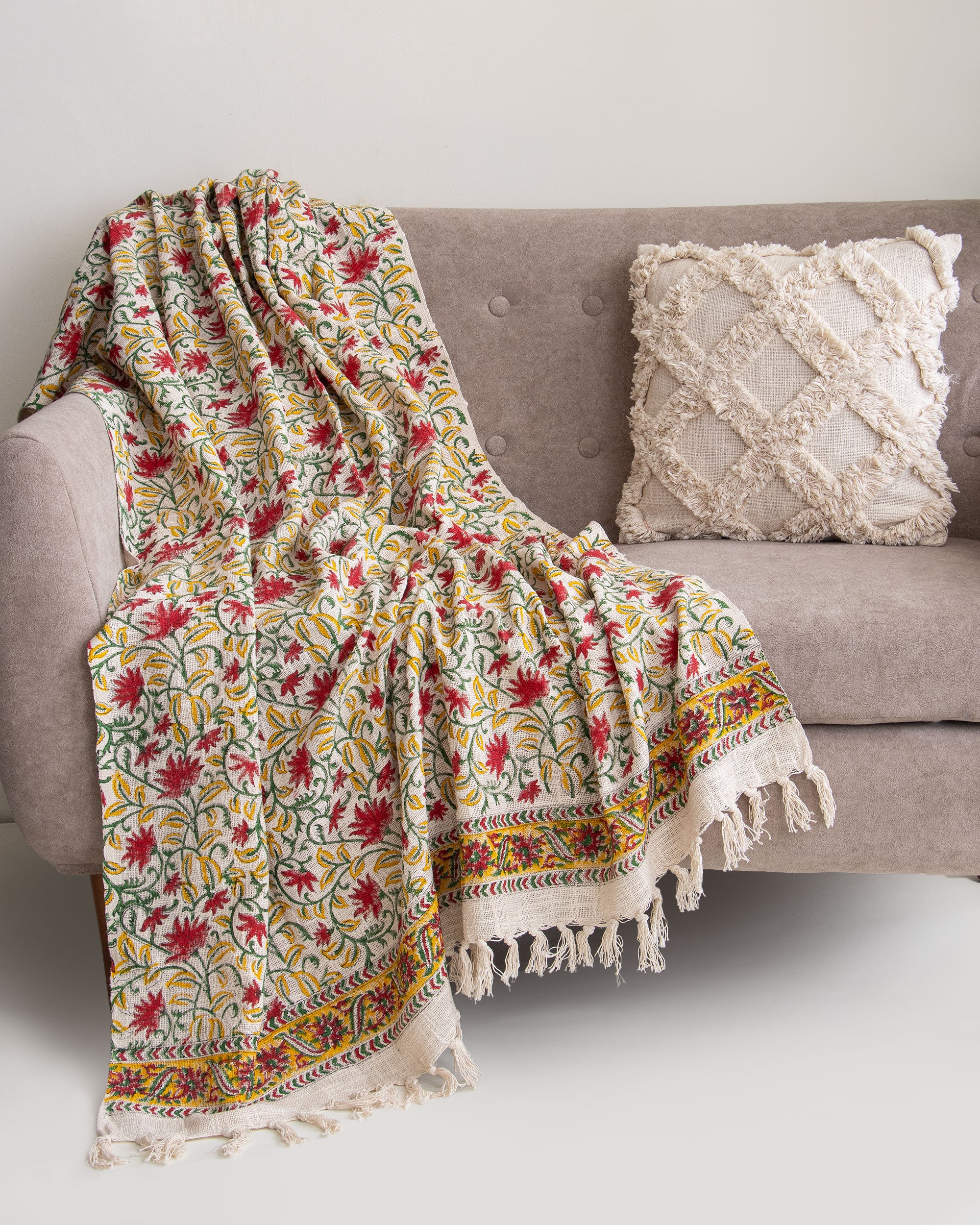 Hand Block Printed Cotton Throw Blanket