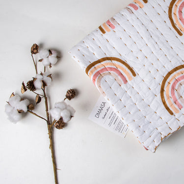 Beautiful Rainbow Print Cotton Small Baby Kantha Blanket
