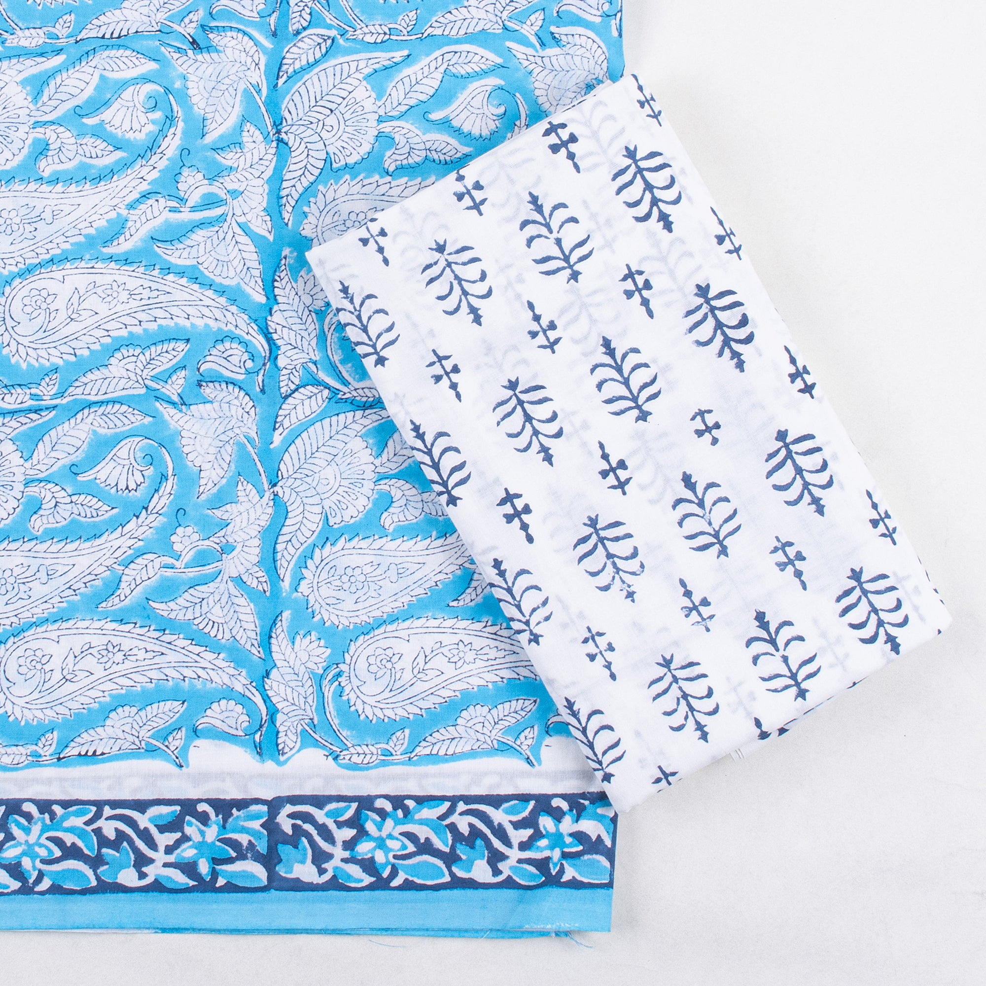 Sky Blue Paisley Pure Cotton Suits With Dupatta