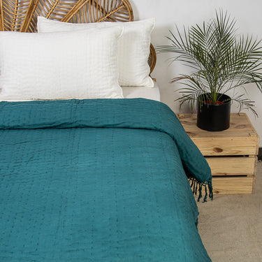 Solid Teal Blue Color handmade Cotton Blanket Kantha Quilt