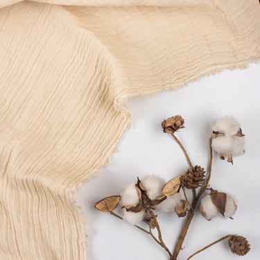 Our Cotton Gauze Fabric is a luxurious expression of natural softness and comfort. Crafted from 100% pure cotton in 4 gentle layers, this fabric offers a uniquely plush feel while remaining breathable and skin-friendly. Its softly crinkled texture and layered construction make it perfect for cozy, functional, and elegant creations that are both timeless and sustainable.
