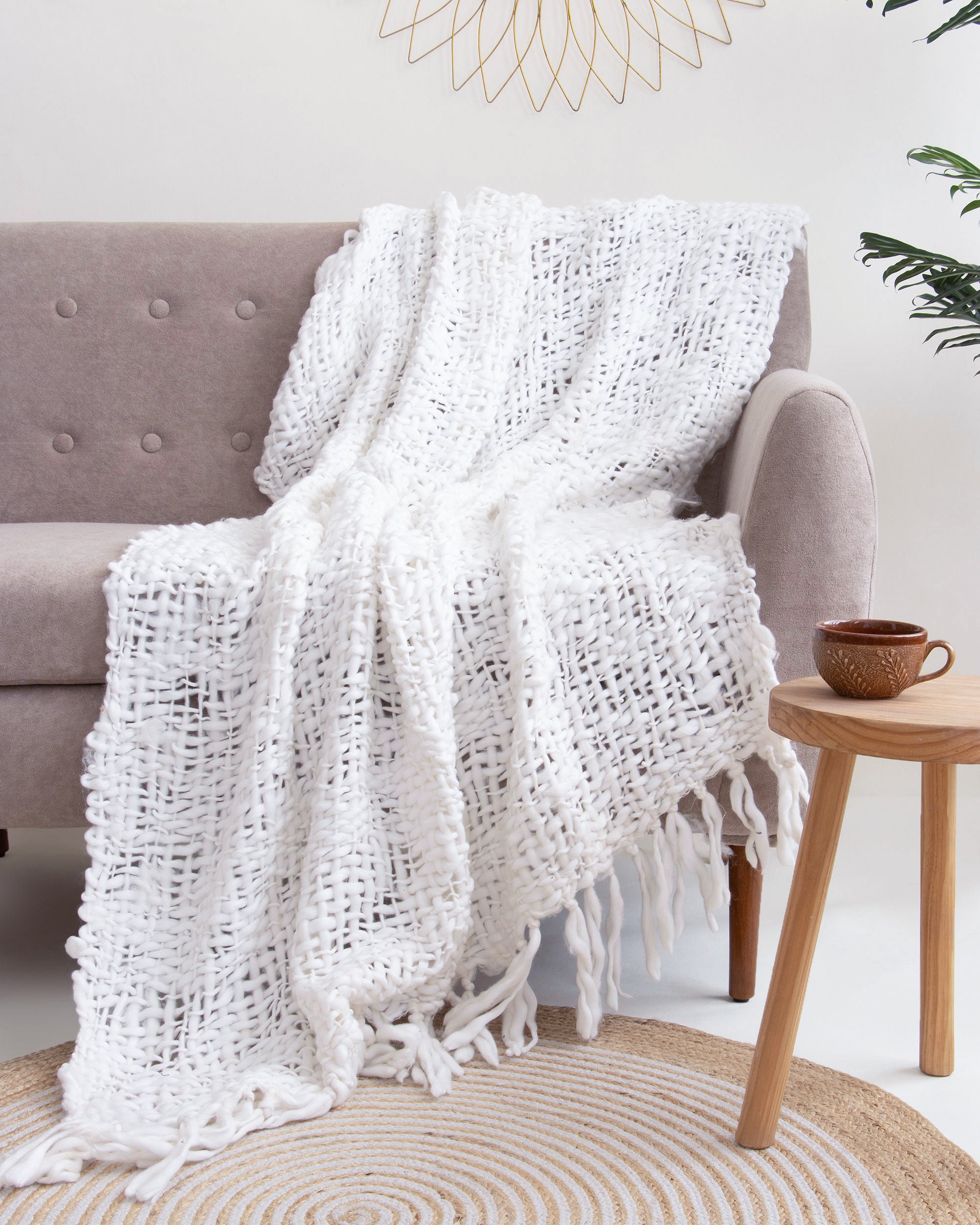 Premium Soft White Acrylic Cotton Throws For Sofas